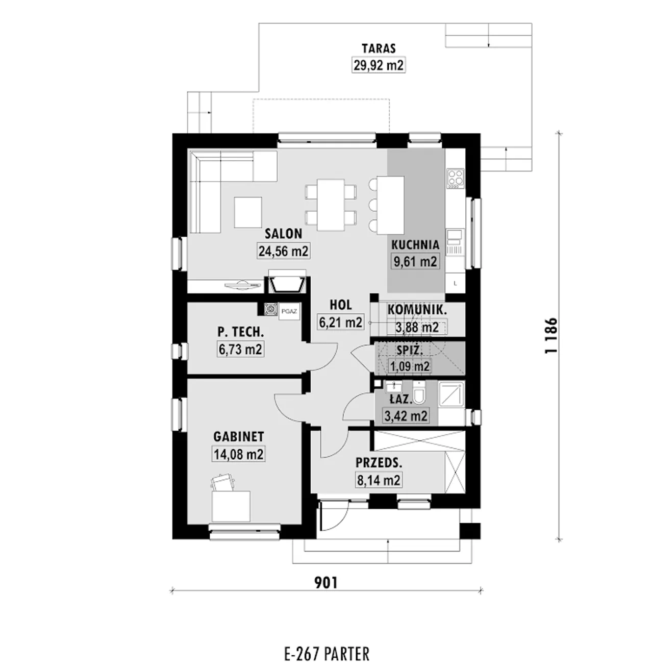 Wypełnij formularz i otrzymaj rysunki w pdf z dokładnymi wymiarami budynku i pomieszczeń (długość, szerokość, wysokość) dla projektu E-267