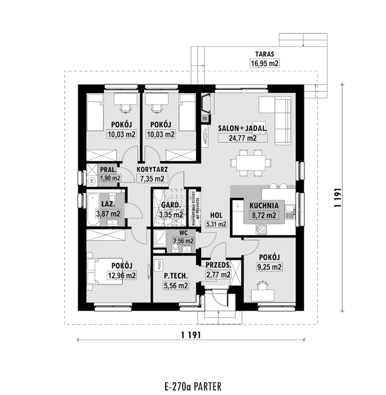 Wypełnij formularz i otrzymaj rysunki w pdf z dokładnymi wymiarami budynku i pomieszczeń (długość, szerokość, wysokość) dla projektu E-270a