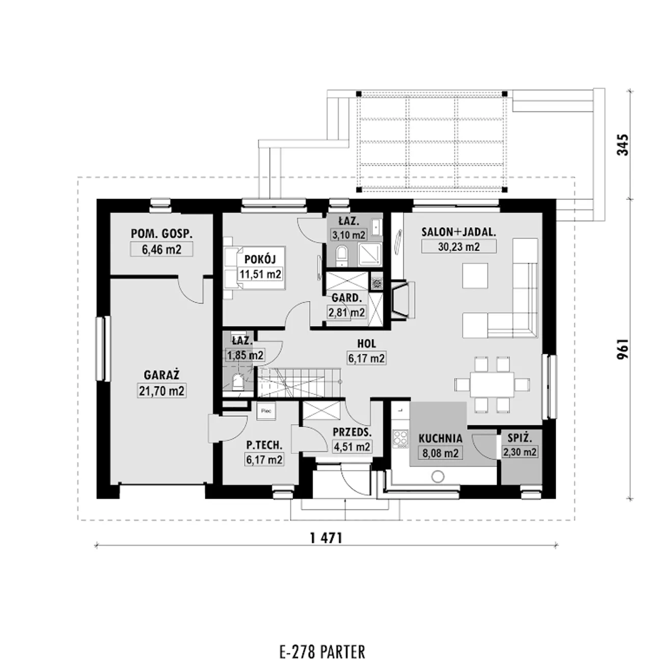 3. Salon + jadalnia | 30,23 m² |