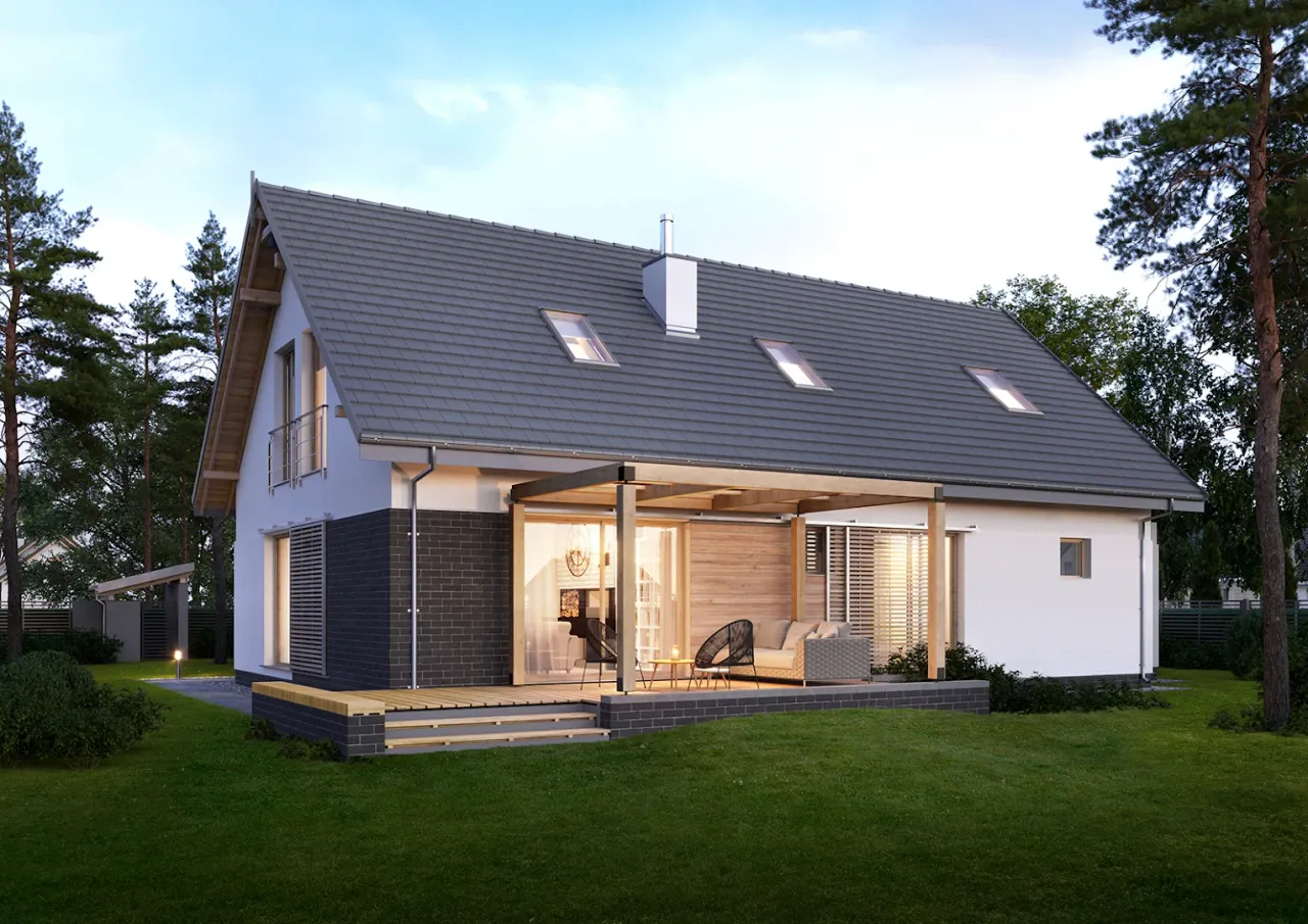 Kupując projekt w technologii murowanej powinieneś budować dom murowany. Zupełna zmiana technologii na szkieletową wymaga przeprojektowania całego budynku ( zmieniają się obciążenia, fundamenty, konstrukcja dachu). Wydamy zgodę na takie przeprojektowanie jednak wiążę się to z dużymi kosztami. Istnieją firmy wykonawcze, które podejmują się zmiany technologii budowy bezpłatnie przy skorzystaniu z ich usług wykonawczych. Zdarza się, że pracownia architektoniczna przygotowuje warianty konkretnego projektu przewidując także inne technologie. Prosimy o sprawdzenie czy istnieje poszukiwana wersja projektu, w zakładce - warianty projektu.