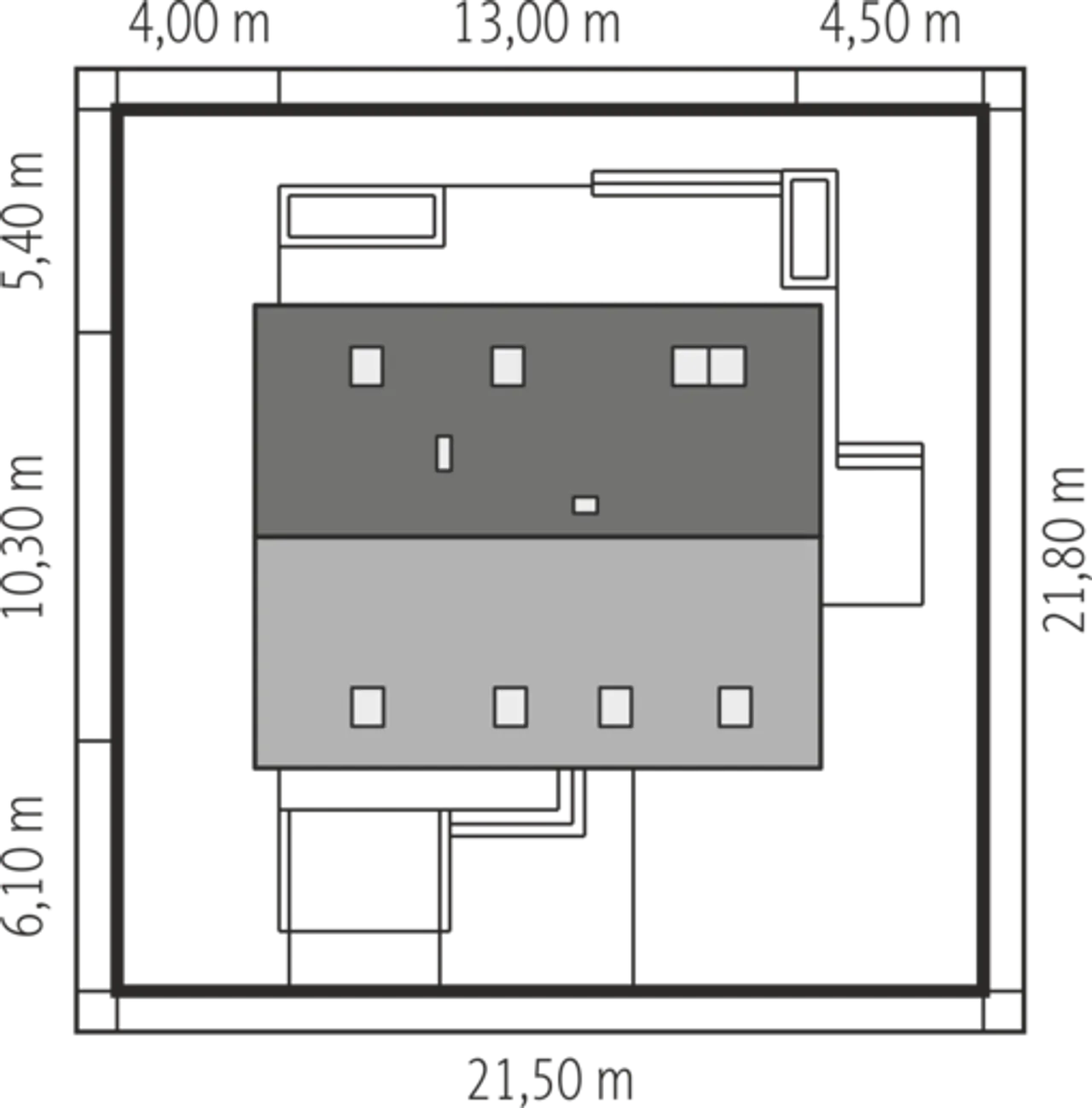 Wypełnij formularz i otrzymaj rysunki w pdf z dokładnymi wymiarami budynku i pomieszczeń (długość, szerokość, wysokość) dla projektu E4 G1 wersja A MULTI-COMFORT
