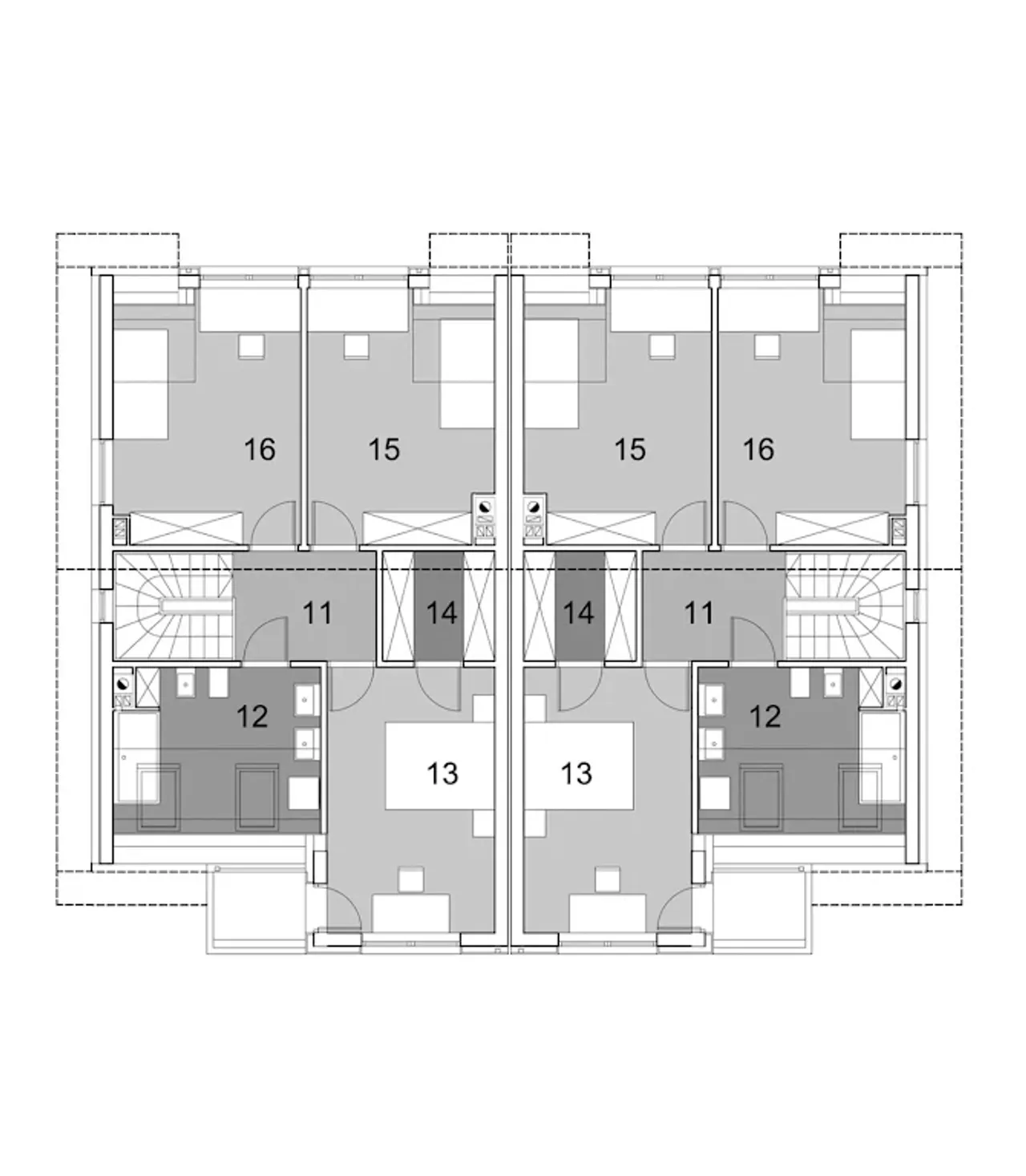 Wypełnij formularz i otrzymaj rysunki w pdf z dokładnymi wymiarami budynku i pomieszczeń (długość, szerokość, wysokość) dla projektu Eco 12 bliźniak