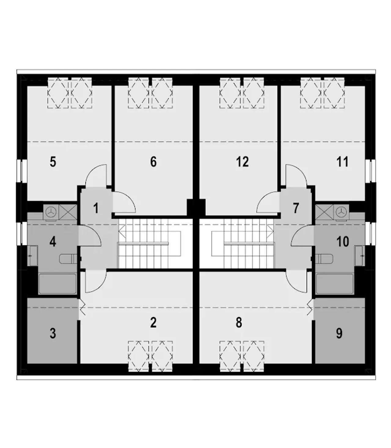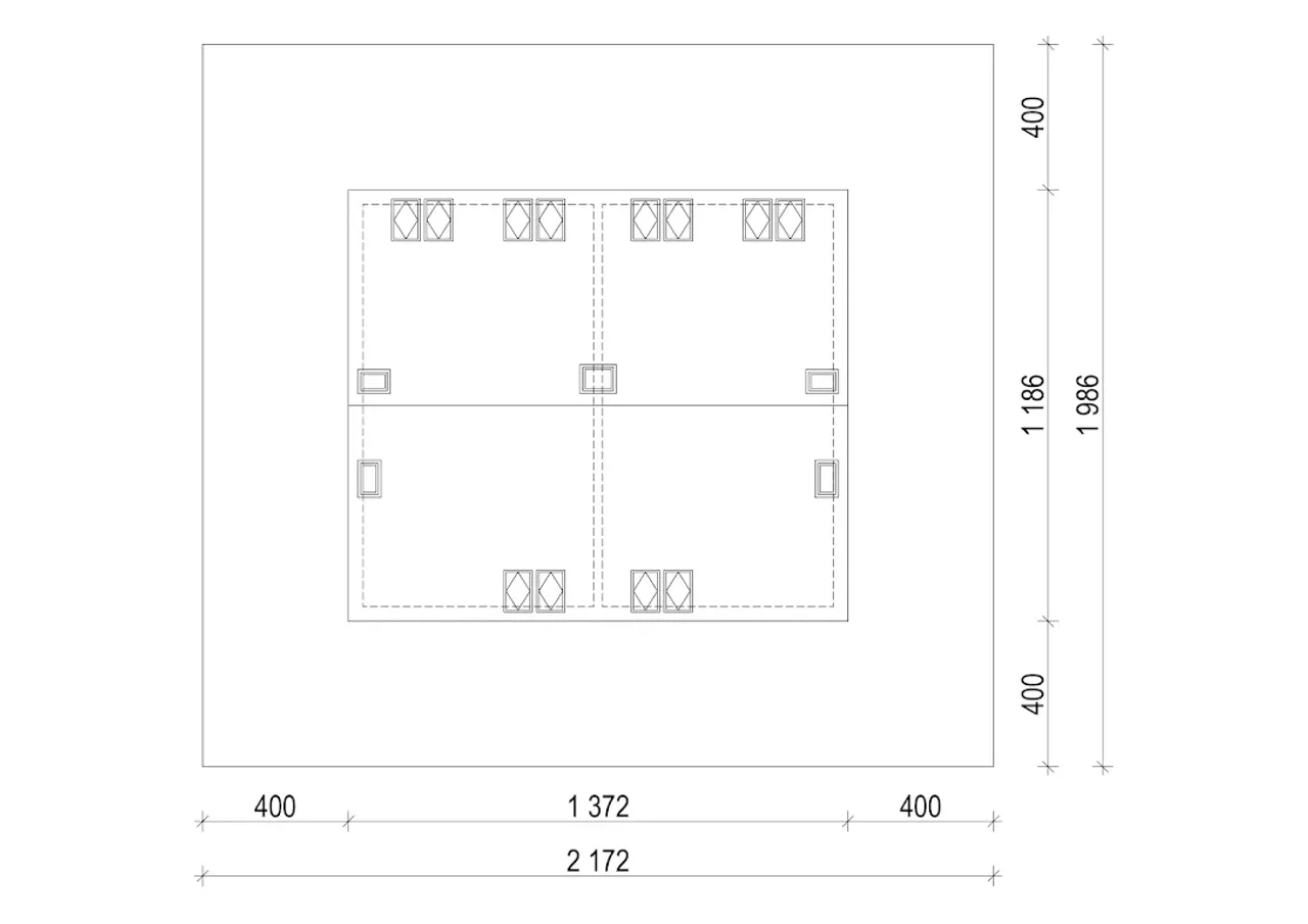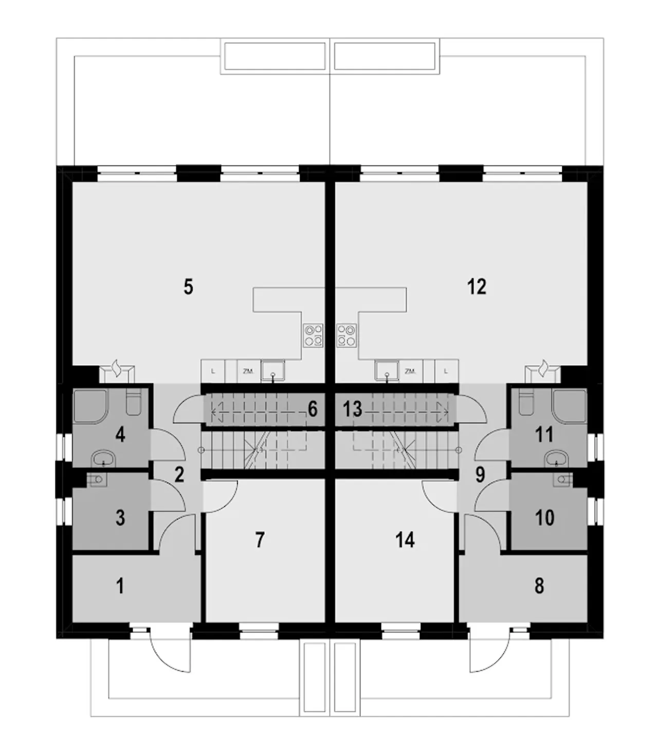 Wypełnij formularz i otrzymaj rysunki w pdf z dokładnymi wymiarami budynku i pomieszczeń (długość, szerokość, wysokość) dla projektu Eco 14 dwulokalowy