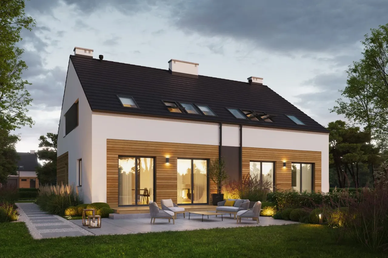 Wypełnij formularz i otrzymaj rysunki w pdf z dokładnymi wymiarami budynku i pomieszczeń (długość, szerokość, wysokość) dla projektu Eco 16 bliźniak
