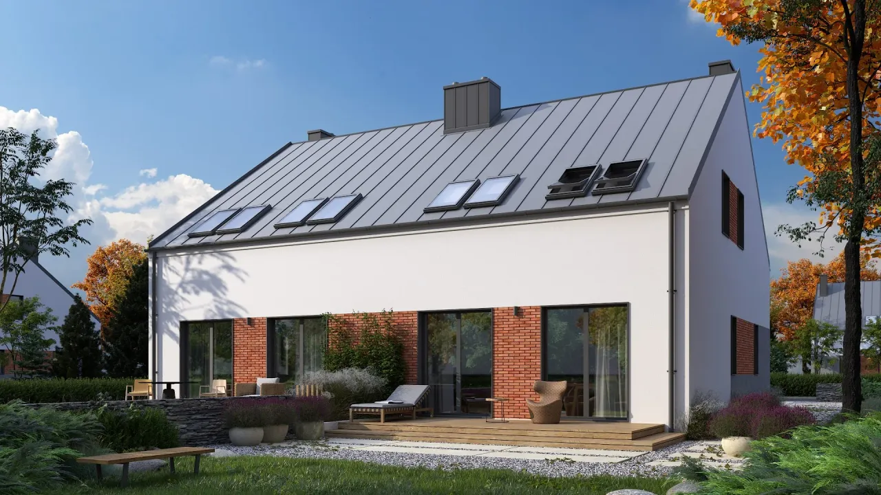Wypełnij formularz i otrzymaj rysunki w pdf z dokładnymi wymiarami budynku i pomieszczeń (długość, szerokość, wysokość) dla projektu Eco 17 dwulokalowy