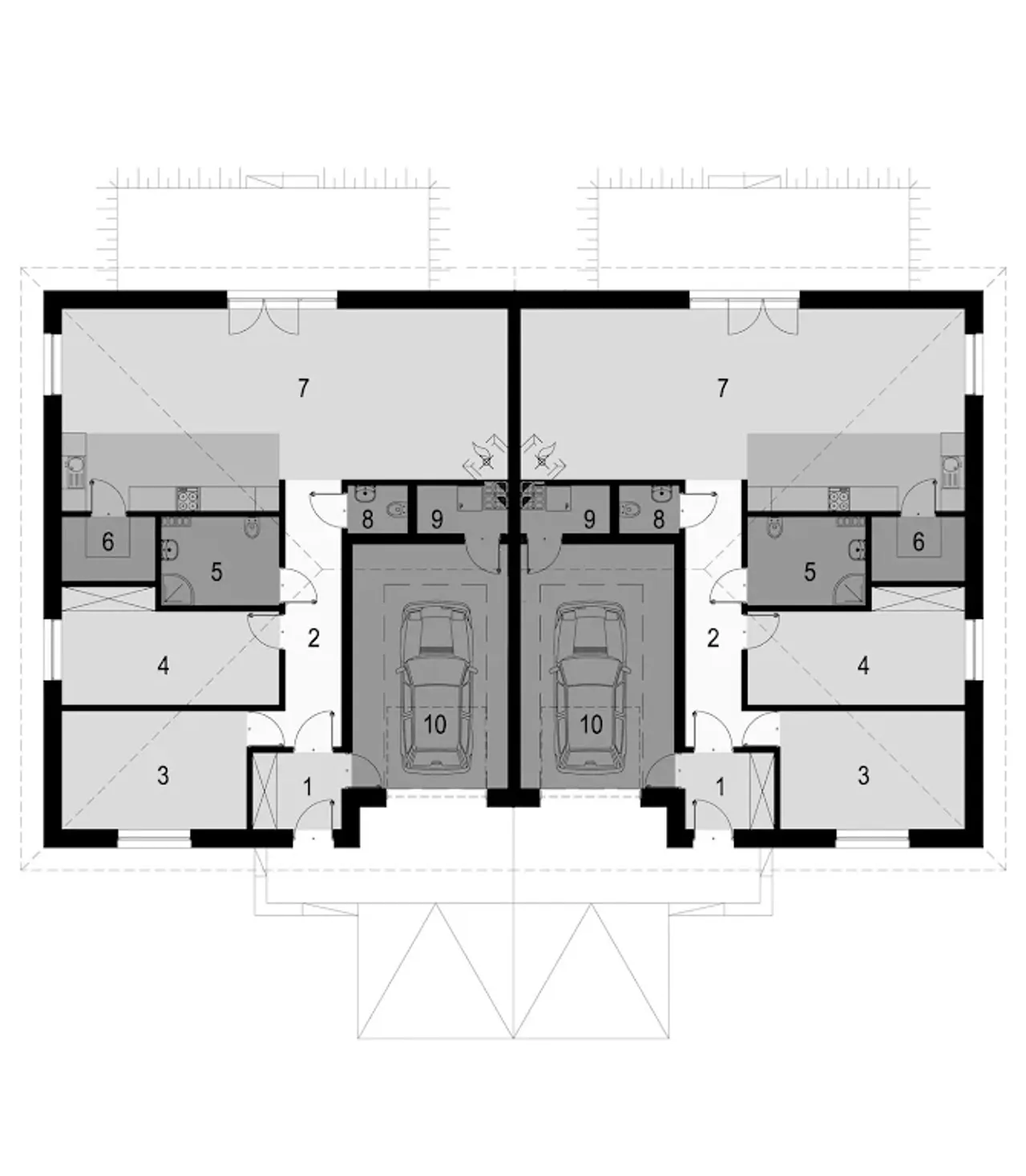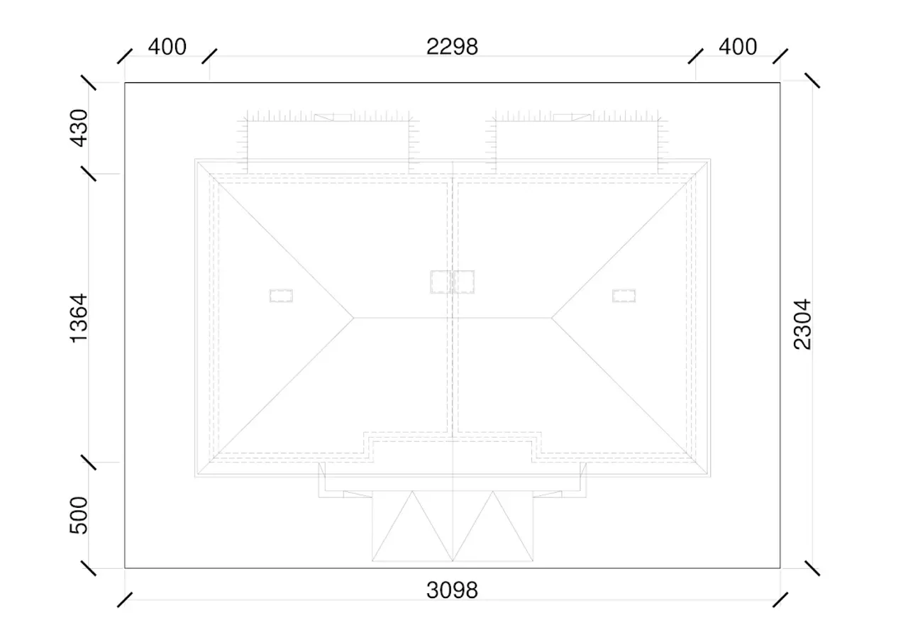 Wypełnij formularz i otrzymaj rysunki w pdf z dokładnymi wymiarami budynku i pomieszczeń (długość, szerokość, wysokość) dla projektu Eco 18 dwulokalowy