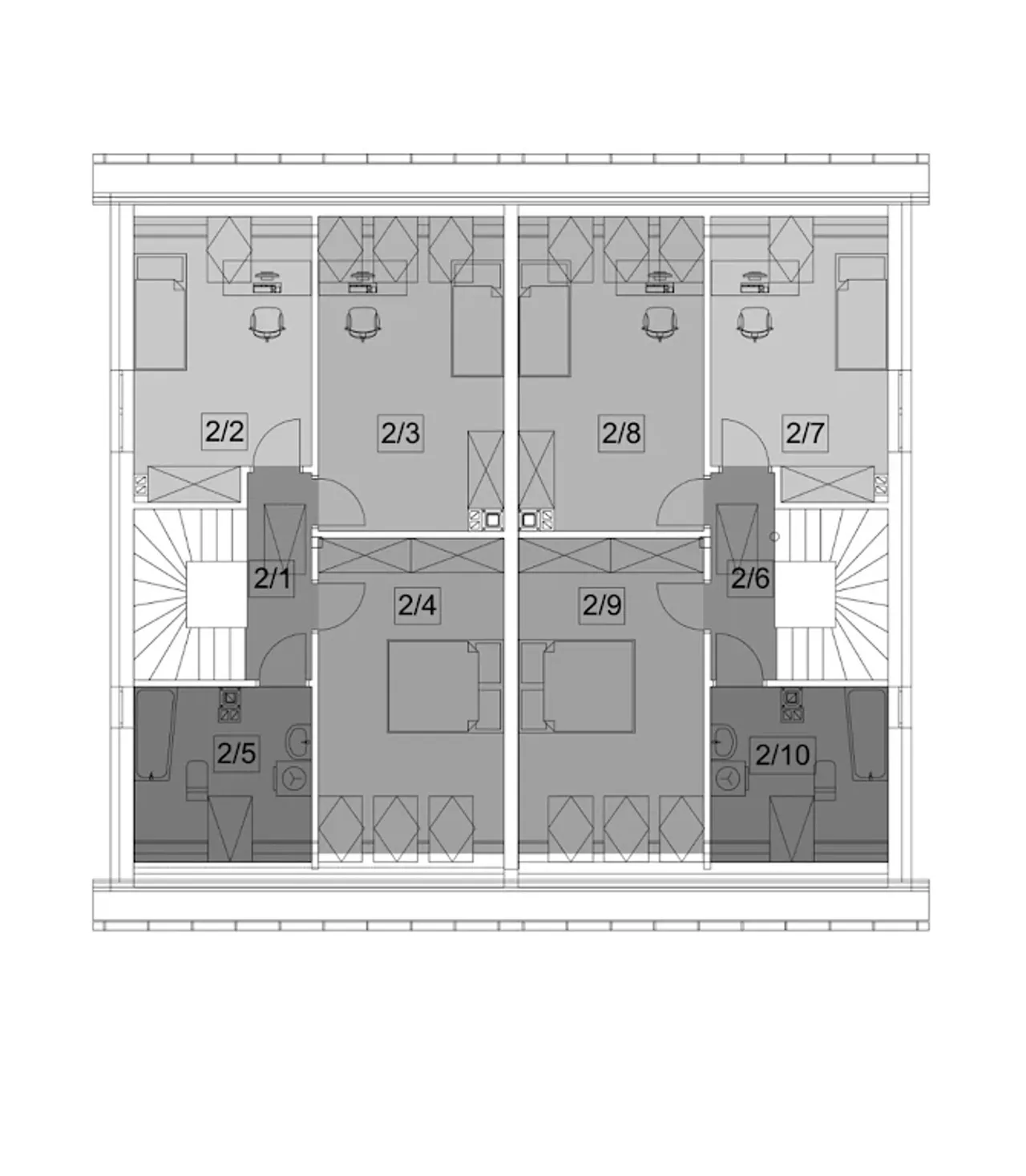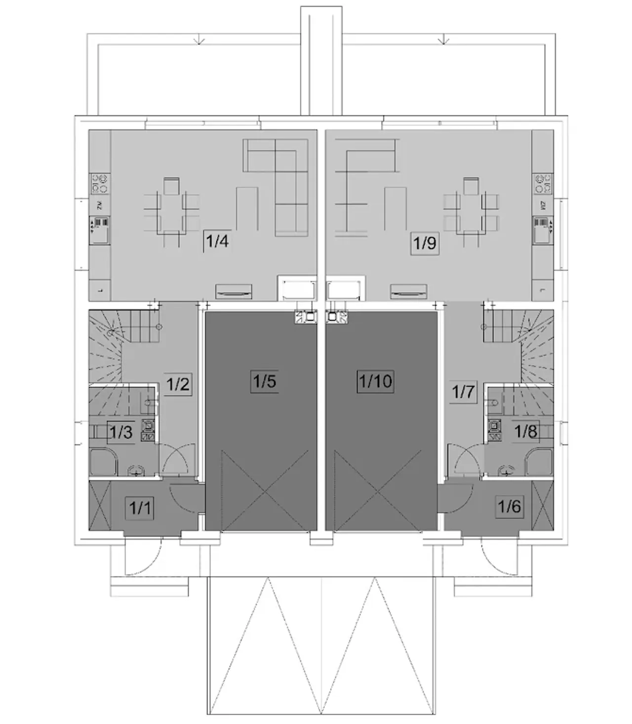Wypełnij formularz i otrzymaj rysunki w pdf z dokładnymi wymiarami budynku i pomieszczeń (długość, szerokość, wysokość) dla projektu Eco 19 dwulokalowy