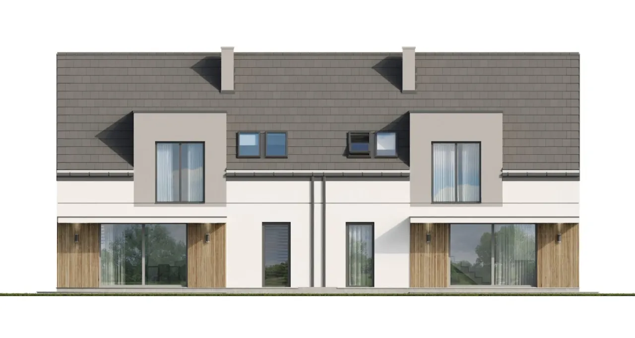 Wypełnij formularz i otrzymaj rysunki w pdf z dokładnymi wymiarami budynku i pomieszczeń (długość, szerokość, wysokość) dla projektu Eco 48 dwulokalowy