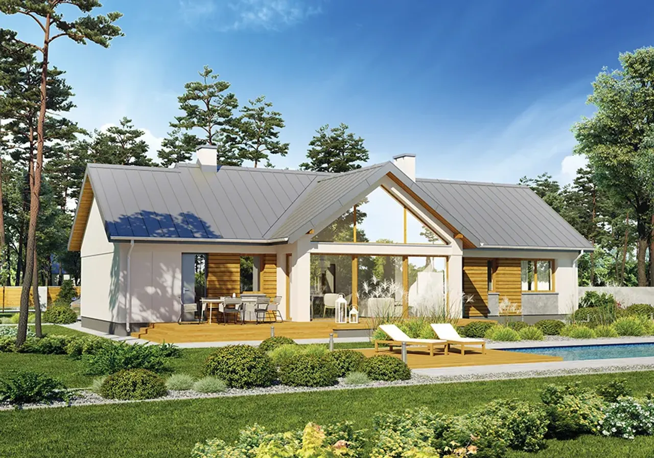 Kupując projekt w technologii murowanej powinieneś budować dom murowany. Zupełna zmiana technologii na szkieletową wymaga przeprojektowania całego budynku ( zmieniają się obciążenia, fundamenty, konstrukcja dachu). Wydamy zgodę na takie przeprojektowanie jednak wiążę się to z dużymi kosztami. Istnieją firmy wykonawcze, które podejmują się zmiany technologii budowy bezpłatnie przy skorzystaniu z ich usług wykonawczych. Zdarza się, że pracownia architektoniczna przygotowuje warianty konkretnego projektu przewidując także inne technologie. Prosimy o sprawdzenie czy istnieje poszukiwana wersja projektu, w zakładce - warianty projektu.
