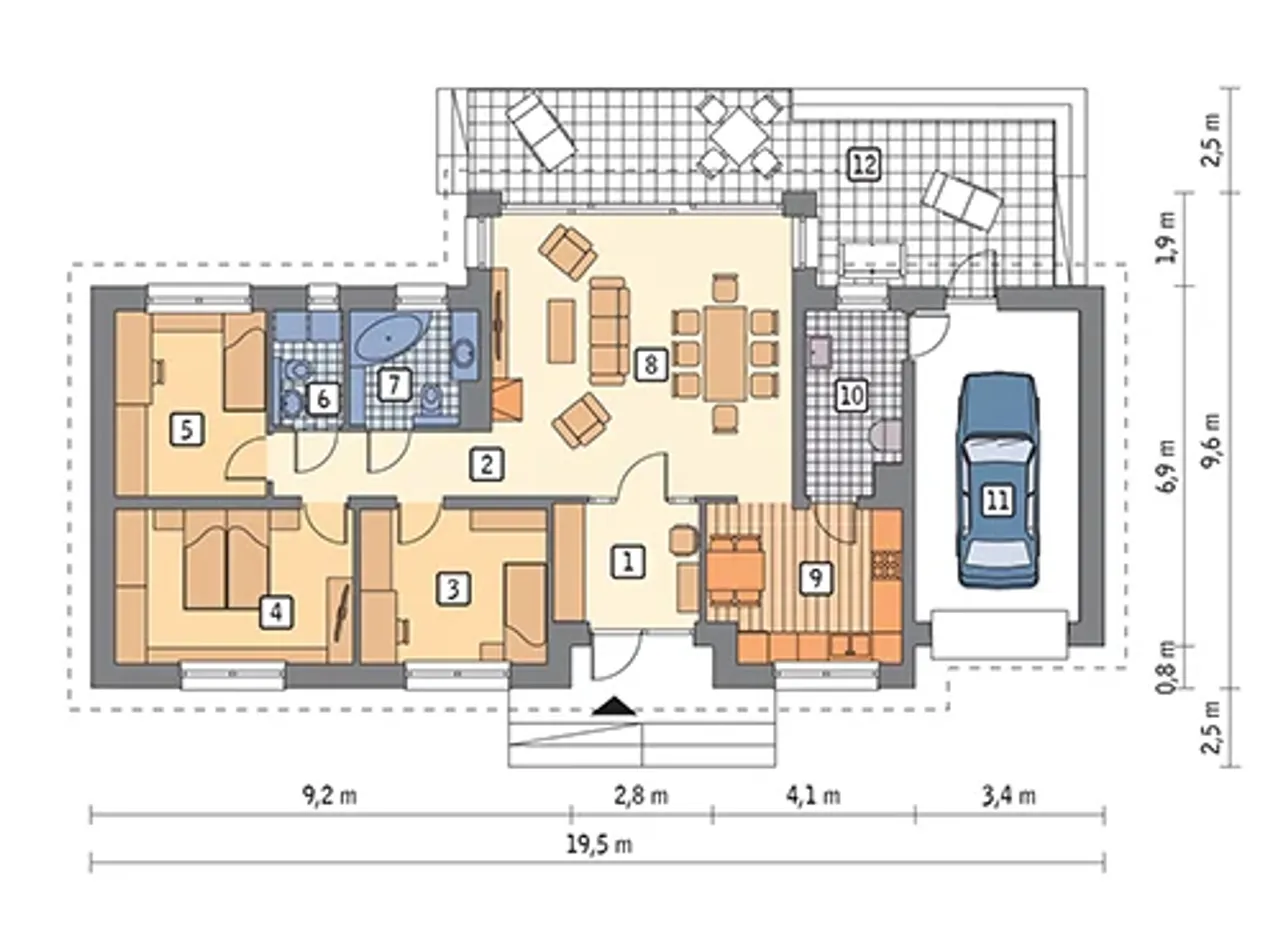 Wypełnij formularz i otrzymaj rysunki w pdf z dokładnymi wymiarami budynku i pomieszczeń (długość, szerokość, wysokość) dla projektu Efektowny - wariant I - M238a