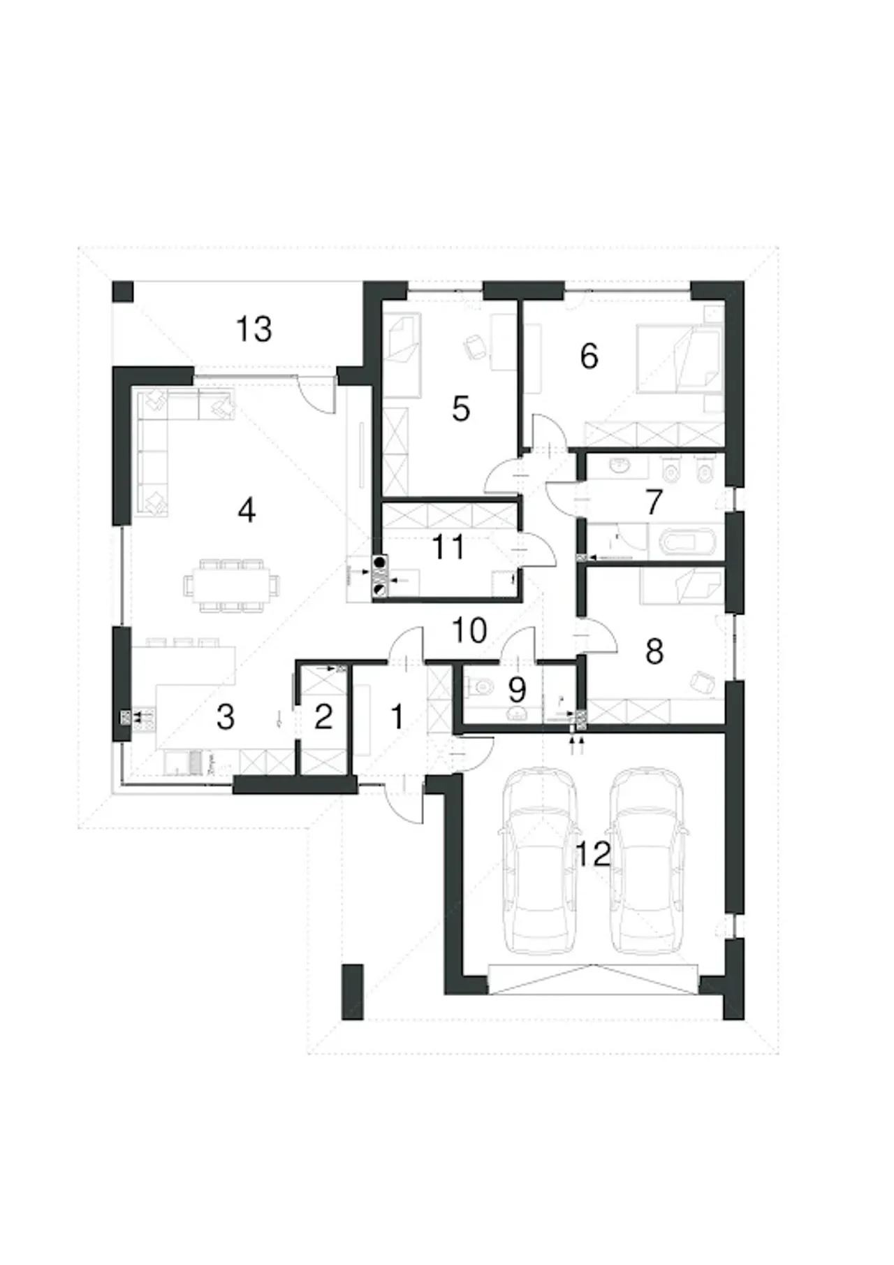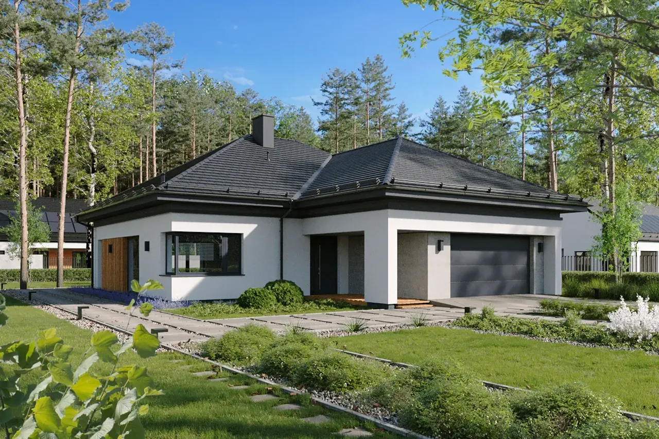 Projekt domu prezentuje się bardzo nowocześnie i funkcjonalnie. Wyraźnie widać jak dużą wagę projektant przykłada do wykorzystania przestrzeni i światła naturalnego, co dla potencjalnych mieszkańców będzie z pewnością dużym atutem. Design zewnętrzny jest prosty, ale elegancki. Dobór materiałów do budowy wydaje się być odpowiedni i praktyczny. Na plus zasługuje też przemyślany układ pomieszczeń. Overall, projekt ten wydaje się być solidną propozycją dla osób szukających domu o nowoczesnym wyglądzie i funkcjonalnym wnętrzu.