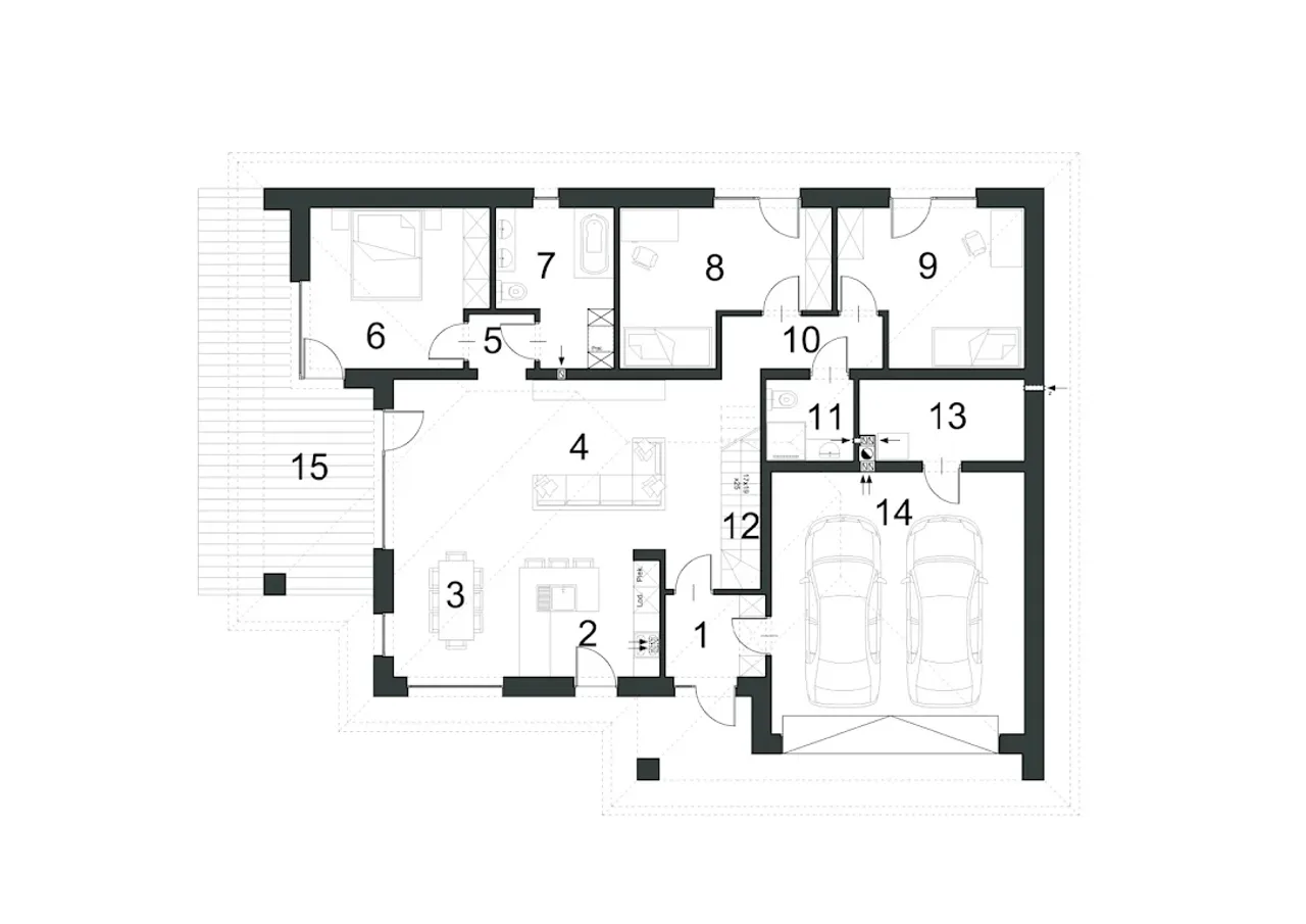 Kupując projekt w technologii murowanej powinieneś budować dom murowany. Zupełna zmiana technologii na szkieletową wymaga przeprojektowania całego budynku ( zmieniają się obciążenia, fundamenty, konstrukcja dachu). Wydamy zgodę na takie przeprojektowanie jednak wiążę się to z dużymi kosztami. Istnieją firmy wykonawcze, które podejmują się zmiany technologii budowy bezpłatnie przy skorzystaniu z ich usług wykonawczych. Zdarza się, że pracownia architektoniczna przygotowuje warianty konkretnego projektu przewidując także inne technologie. Prosimy o sprawdzenie czy istnieje poszukiwana wersja projektu, w zakładce - warianty projektu.
