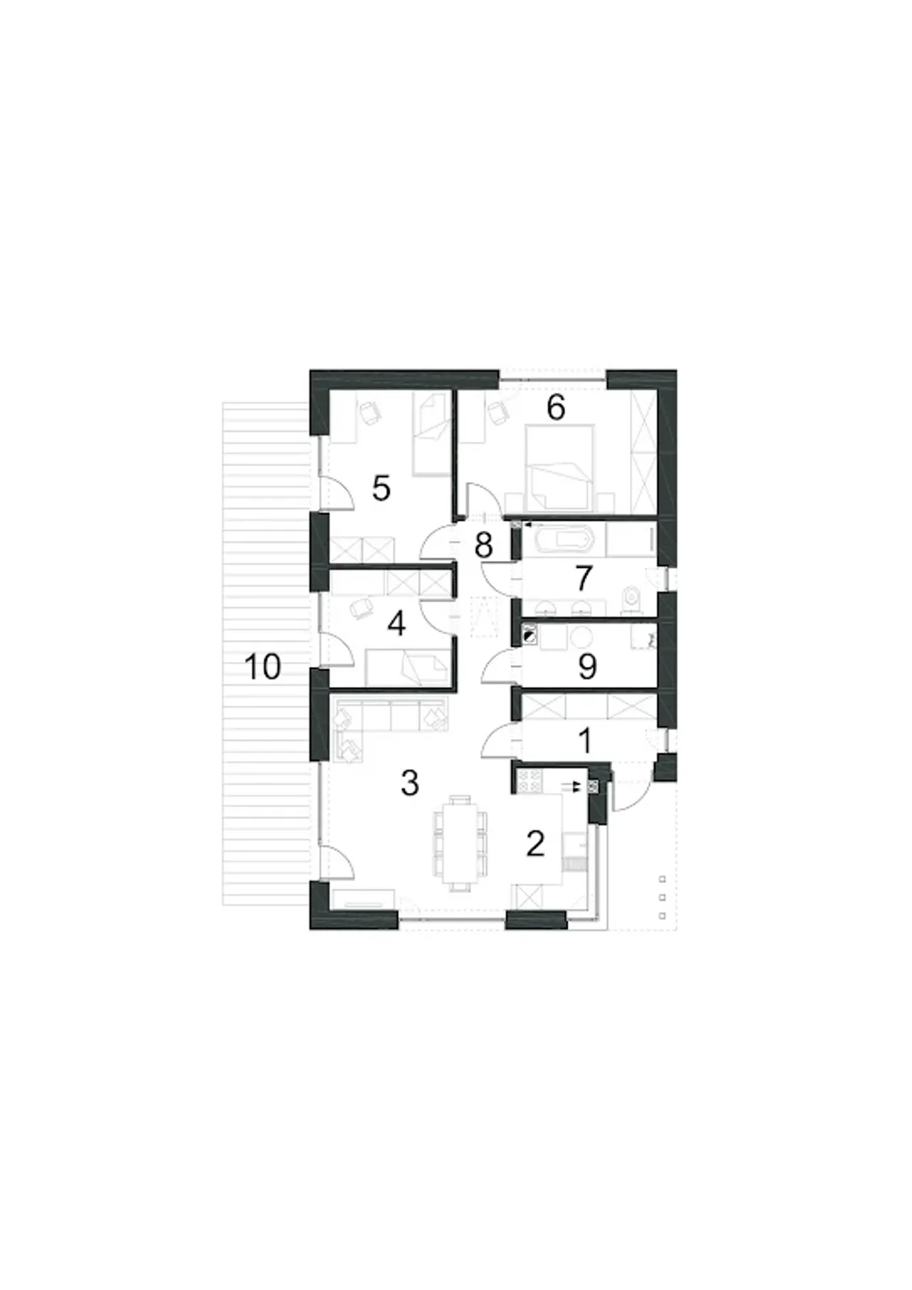 Wypełnij formularz i otrzymaj rysunki w pdf z dokładnymi wymiarami budynku i pomieszczeń (długość, szerokość, wysokość) dla projektu EG-95 wariant I