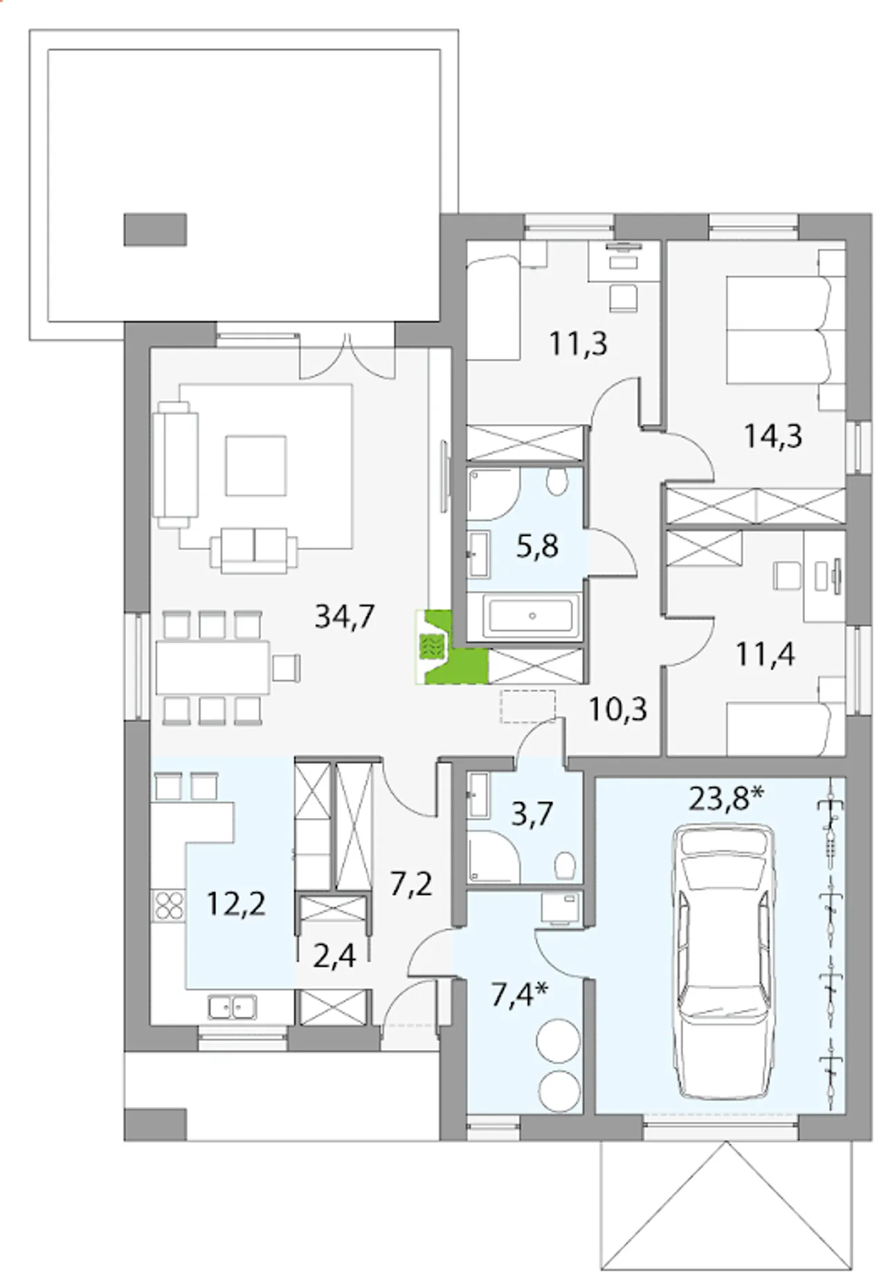 Wypełnij formularz i otrzymaj rysunki w pdf z dokładnymi wymiarami budynku i pomieszczeń (długość, szerokość, wysokość) dla projektu Eko Geralt 1A-30