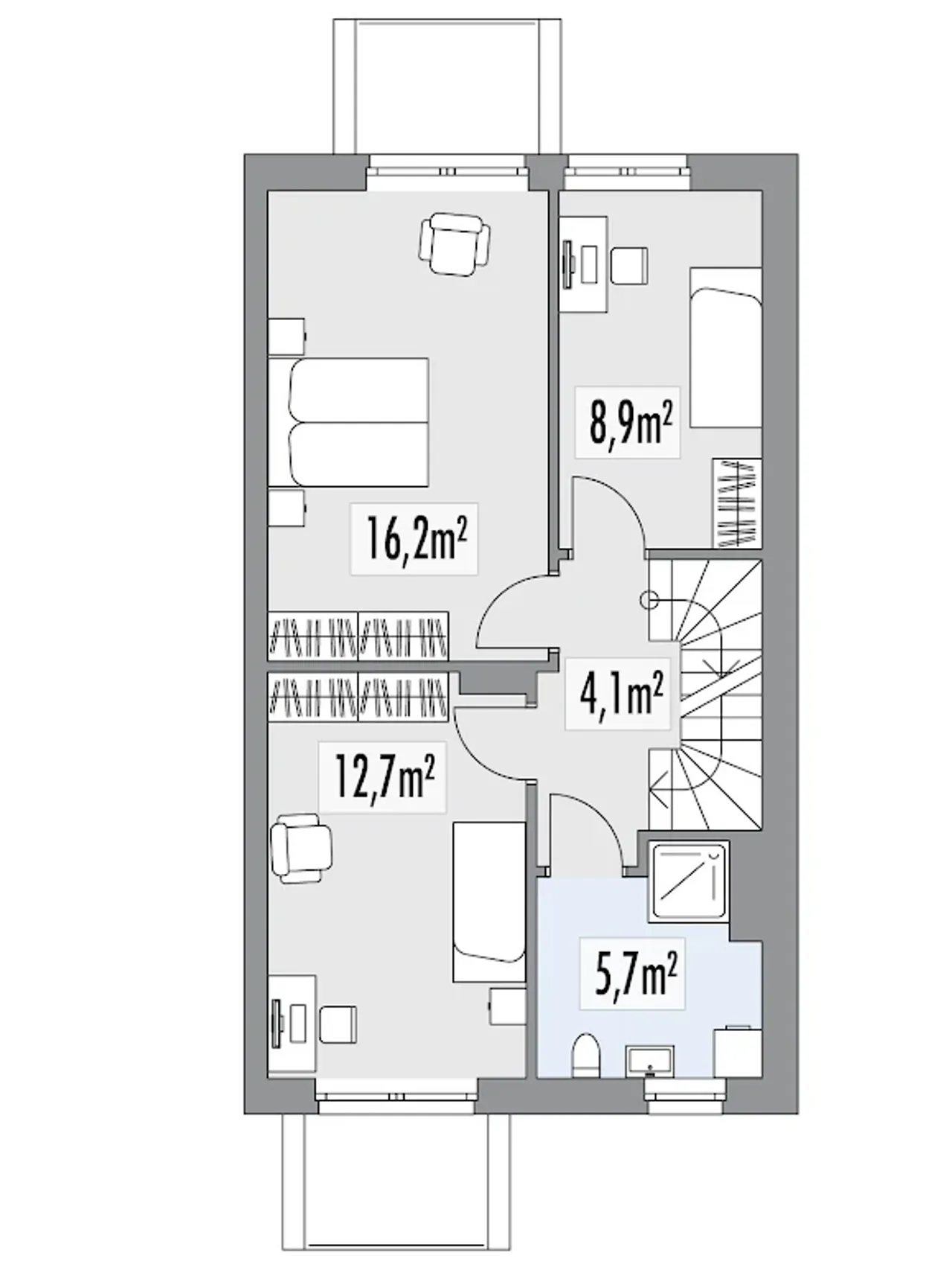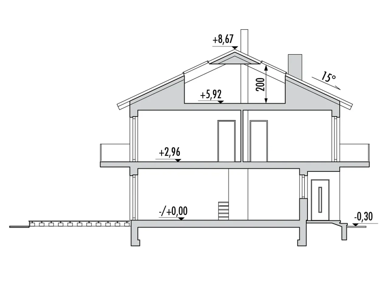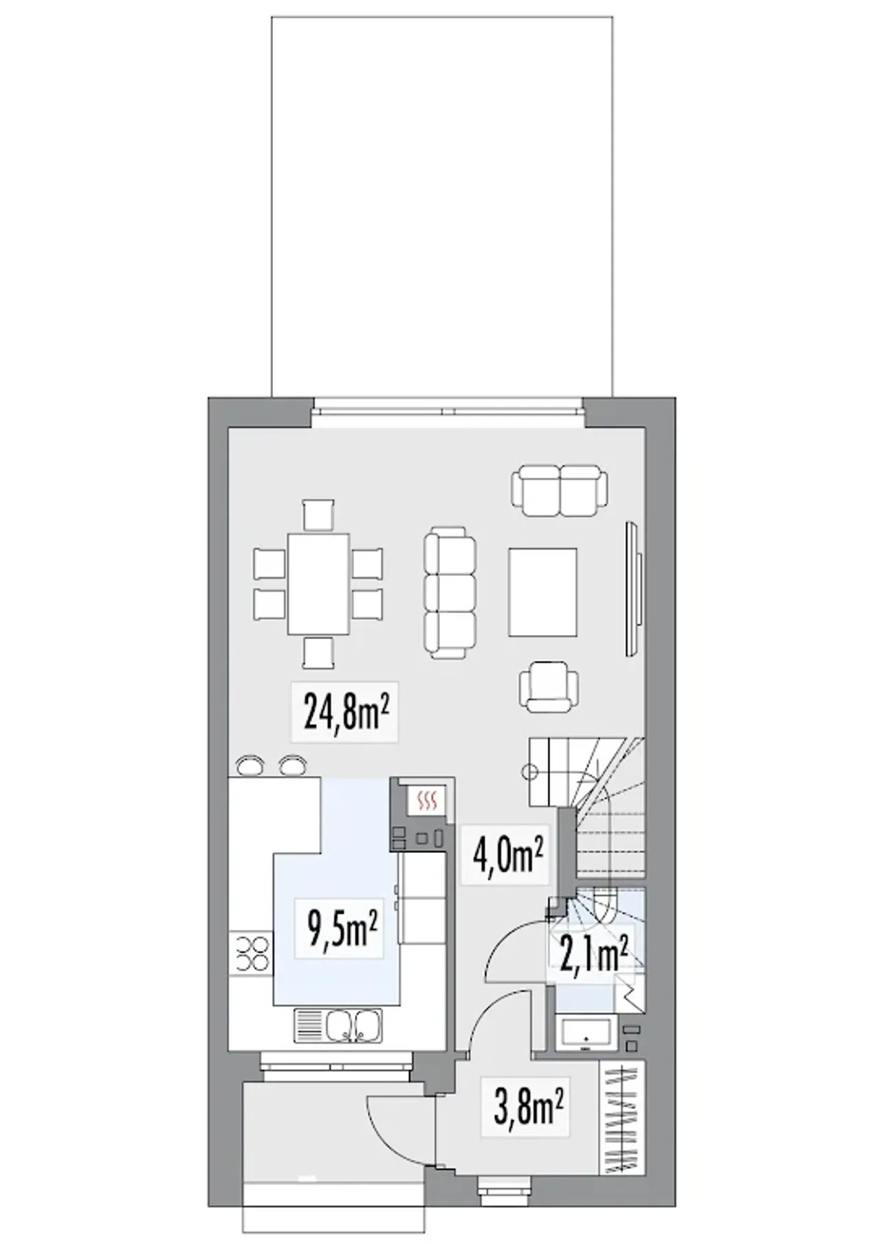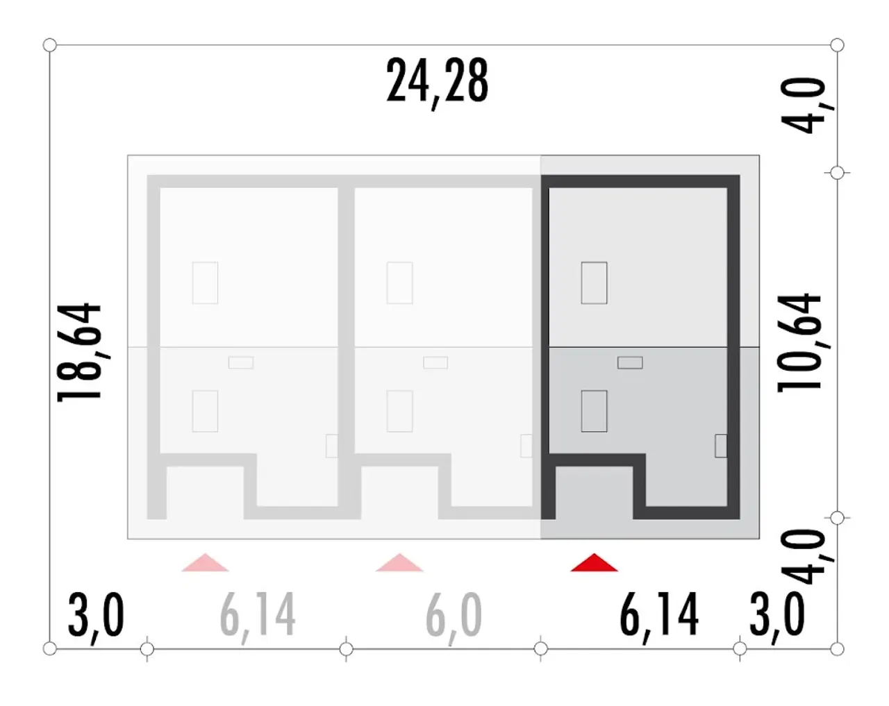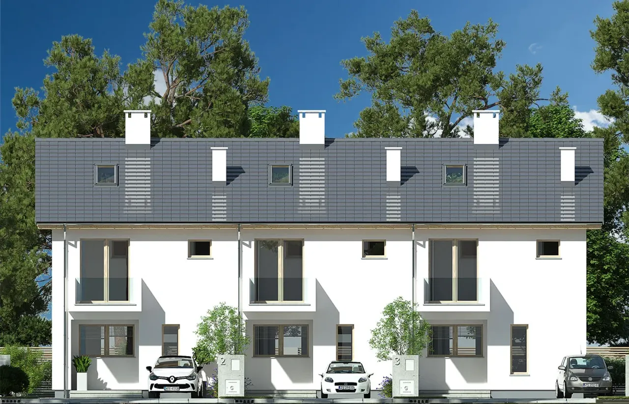 Wypełnij formularz i otrzymaj rysunki w pdf z dokładnymi wymiarami budynku i pomieszczeń (długość, szerokość, wysokość) dla projektu Elena A - segment prawy, szeregówka