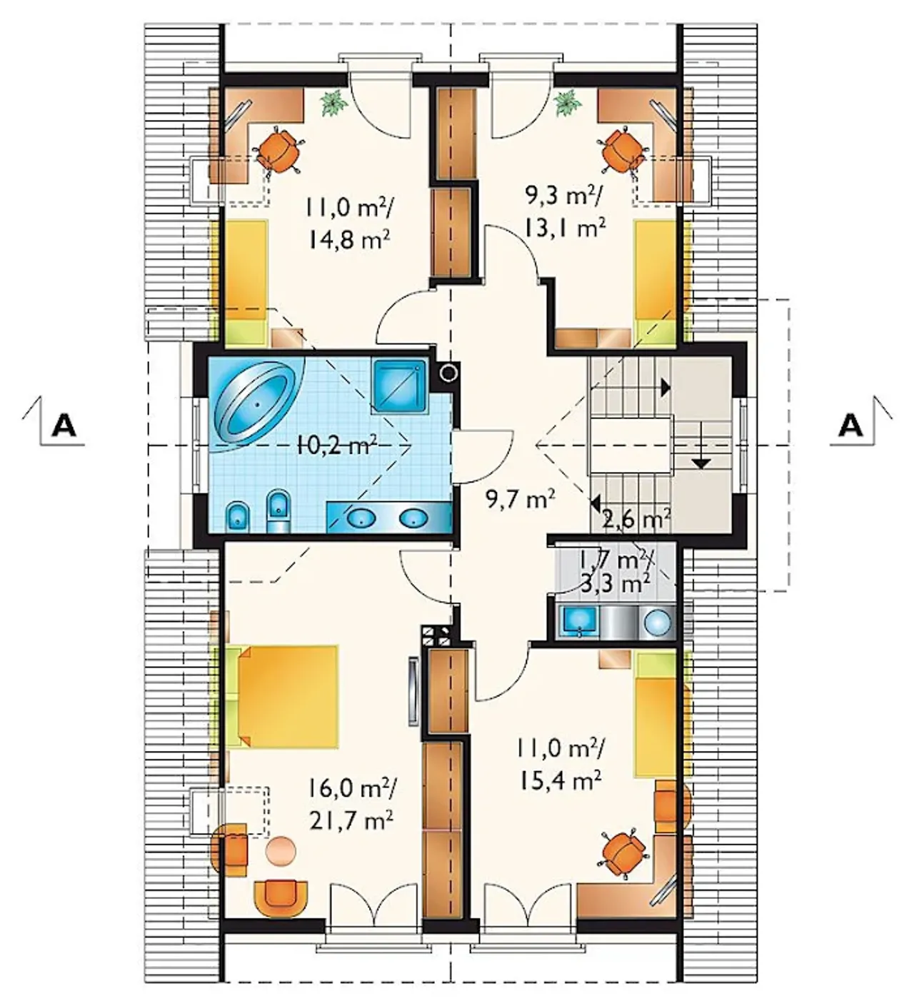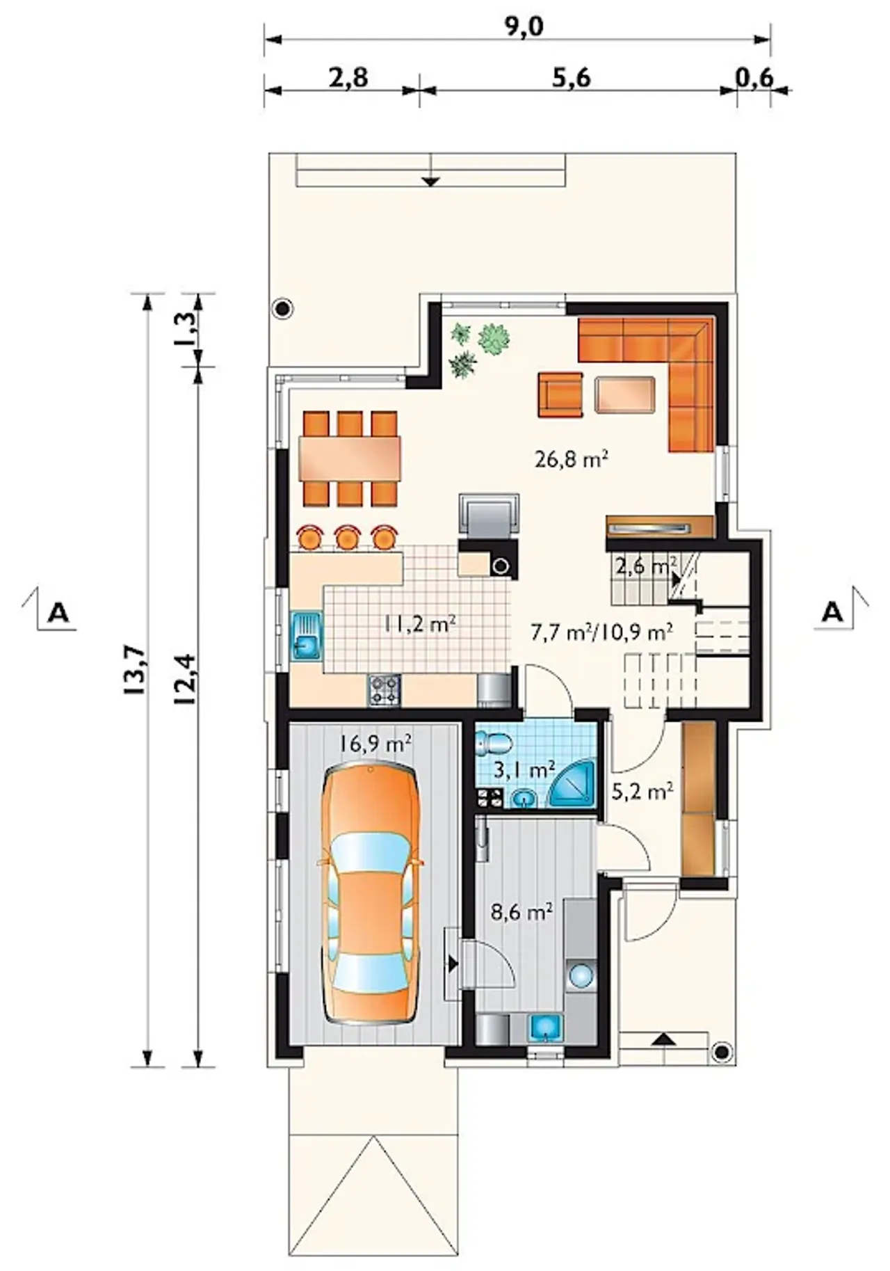 - elewacje - pokazują dokładny wygląd domu od frontu, z tyłu i z boków