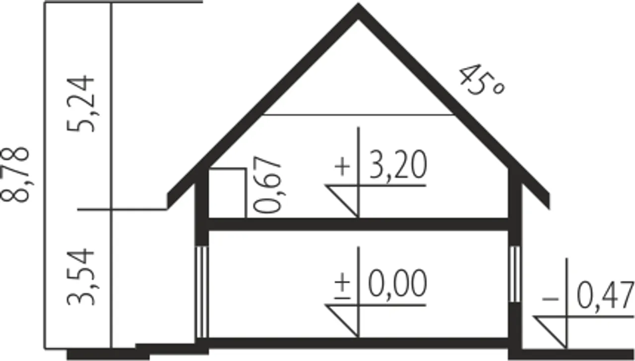 Kąt nachylenia dachu 45 ° |
