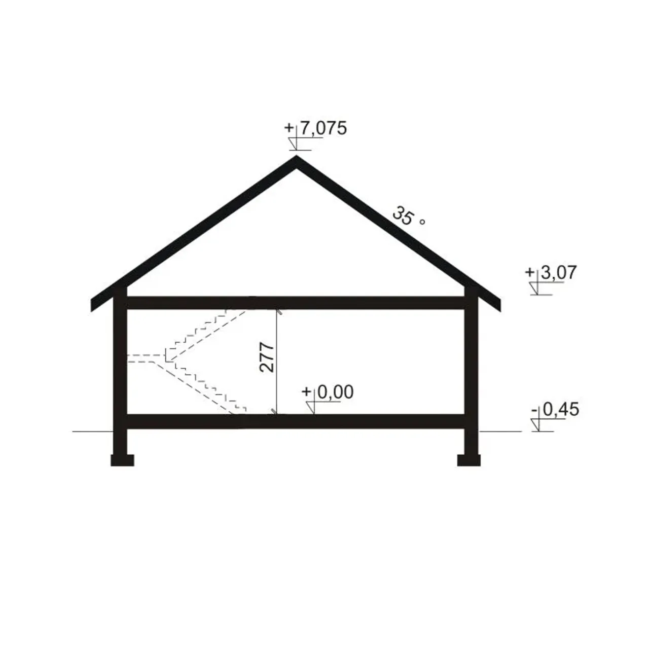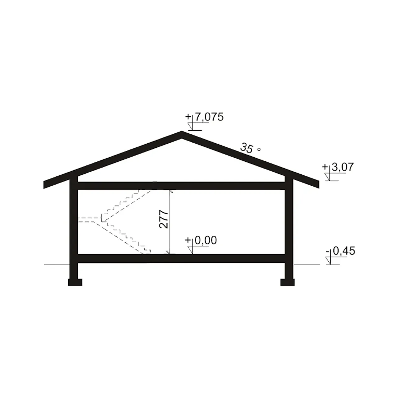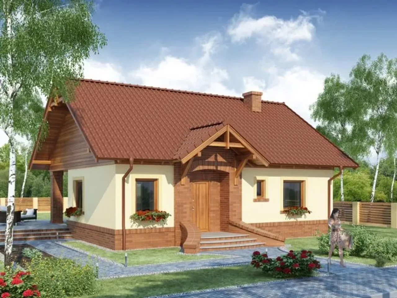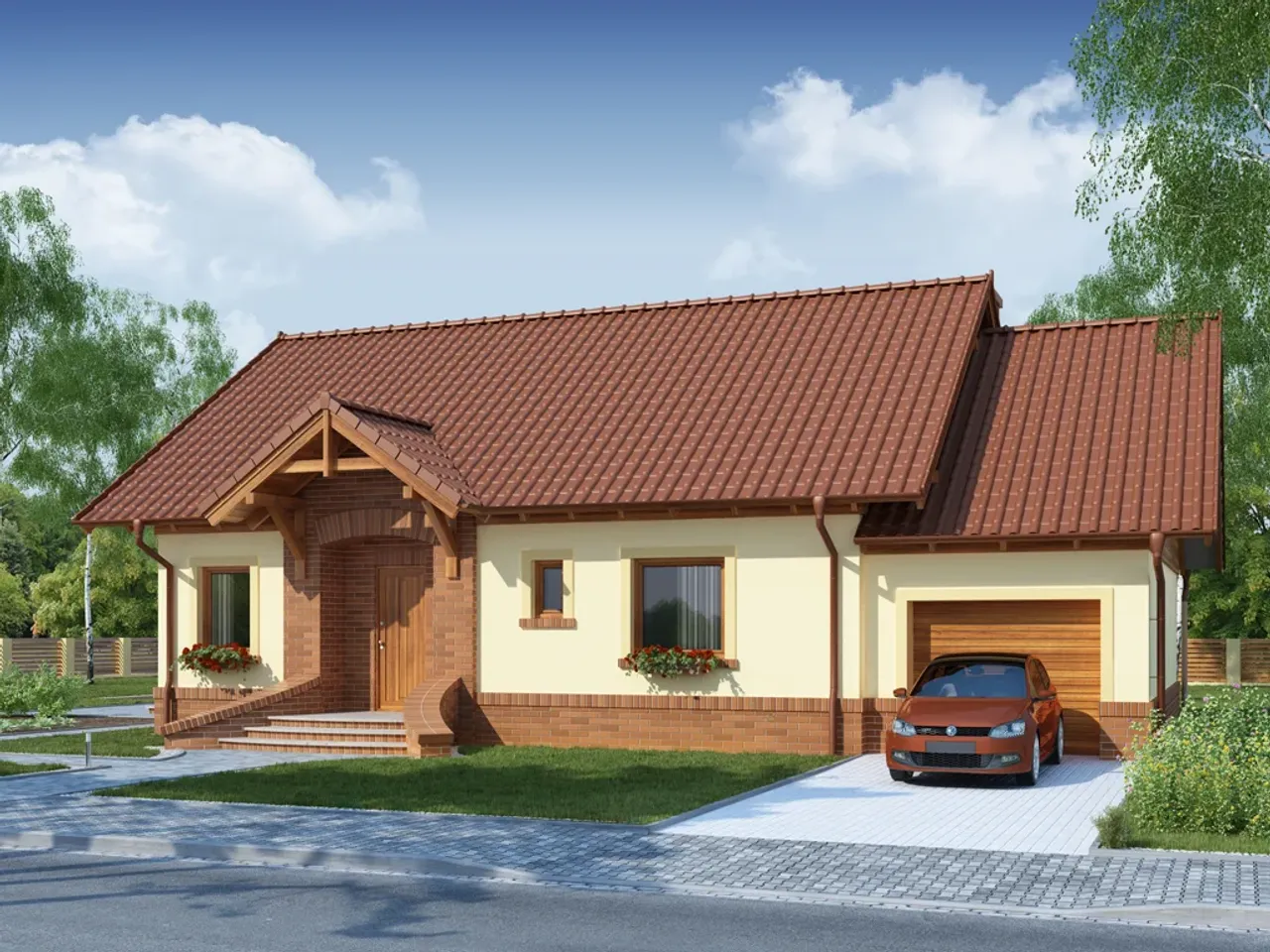 Gotowy projekt domu Eliasz PS to ciekawy, funkcjonalny projekt domu w technologii murowanej. Eliasz PS posiada garaż jednostanowiskowy zlokalizowany w bryle budynku. Eliasz PS to dom parterowy w stylu tradycyjnym o kubaturze 309.99 m3. Eliasz PS to dom całoroczny z dachem dwuspadowym o kącie nachylenia 35 stopni.