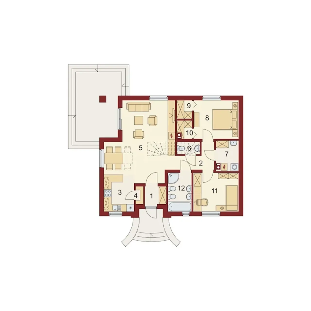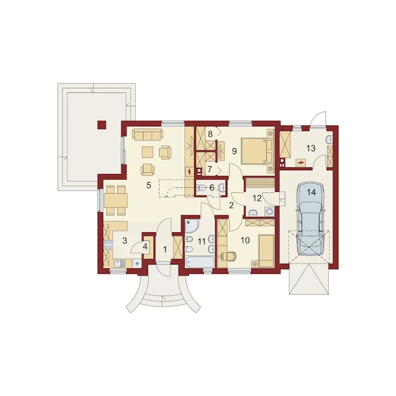 Projekt domu Eliasz PS Domena jest niezwykle elegancki, z modernistycznym wyglądem i funkcjonalnym rozkładem pomieszczeń. Układ domu został zaprojektowany z myślą o zapewnieniu mieszkańcom maksymalnej prywatności, co jest warte uwagi. Ponadto, atrakcyjny wygląd zewnętrzny, połączony z przestronnym tarasem, z pewnością spełni oczekiwania każdej rodziny poszukującej idealnego domu.