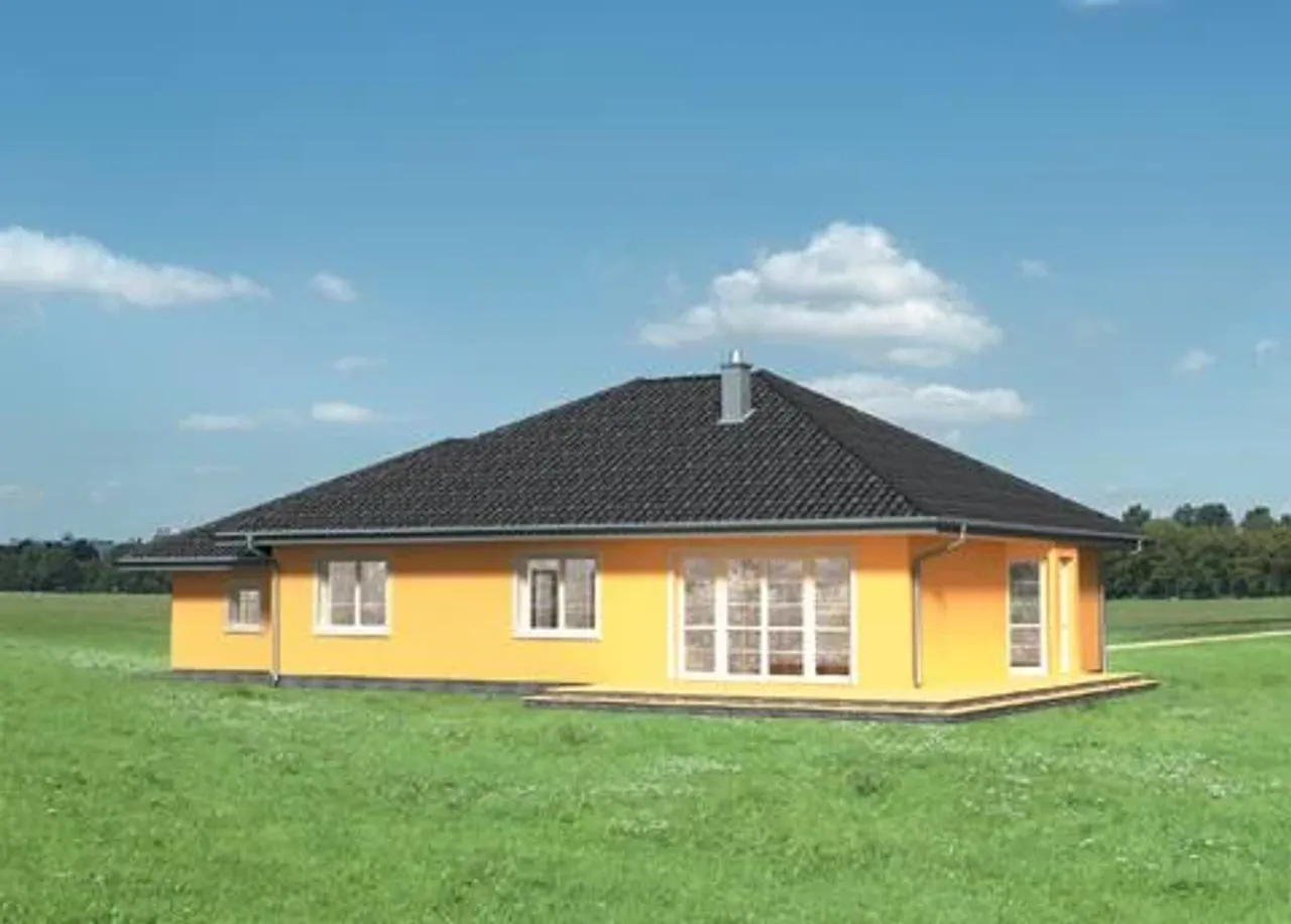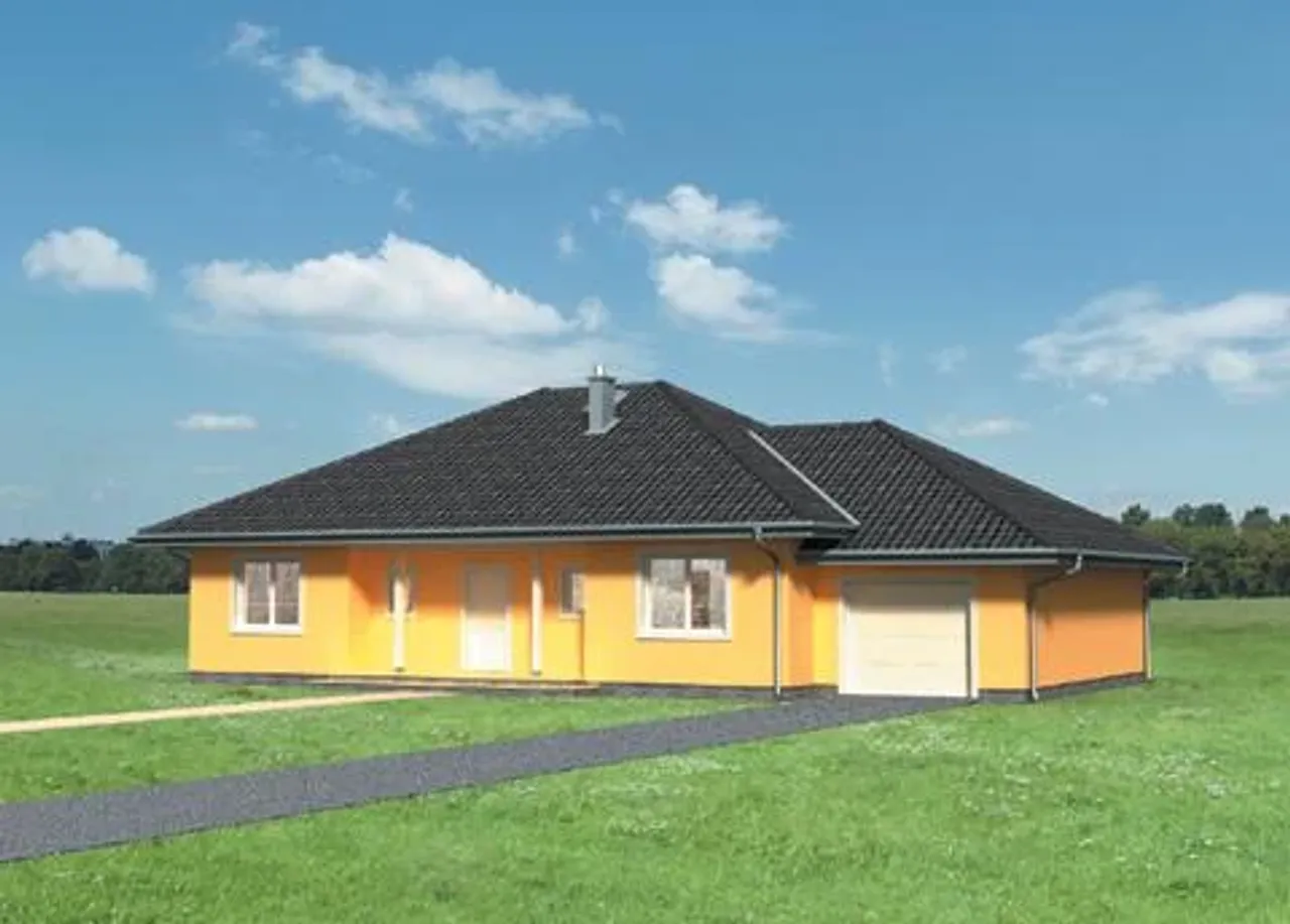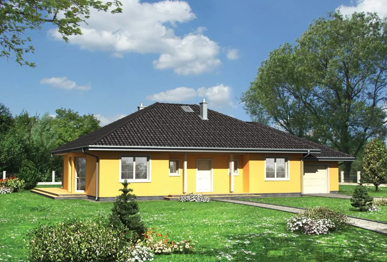 Projekt domu jednorodzinnego Eliza to funkcjonalny parterowy dom całoroczny dla rodzin, które cenią spokojny, tradycyjny styl zabudowy i uporządkowany układ wnętrza. Prosta organizacja stref, klasyczna sylwetka z dachem wielospadowym i praktyczny garaż jednostanowiskowy tworzą dom wygodny w codziennym użytkowaniu i czytelny na etapie budowy.
