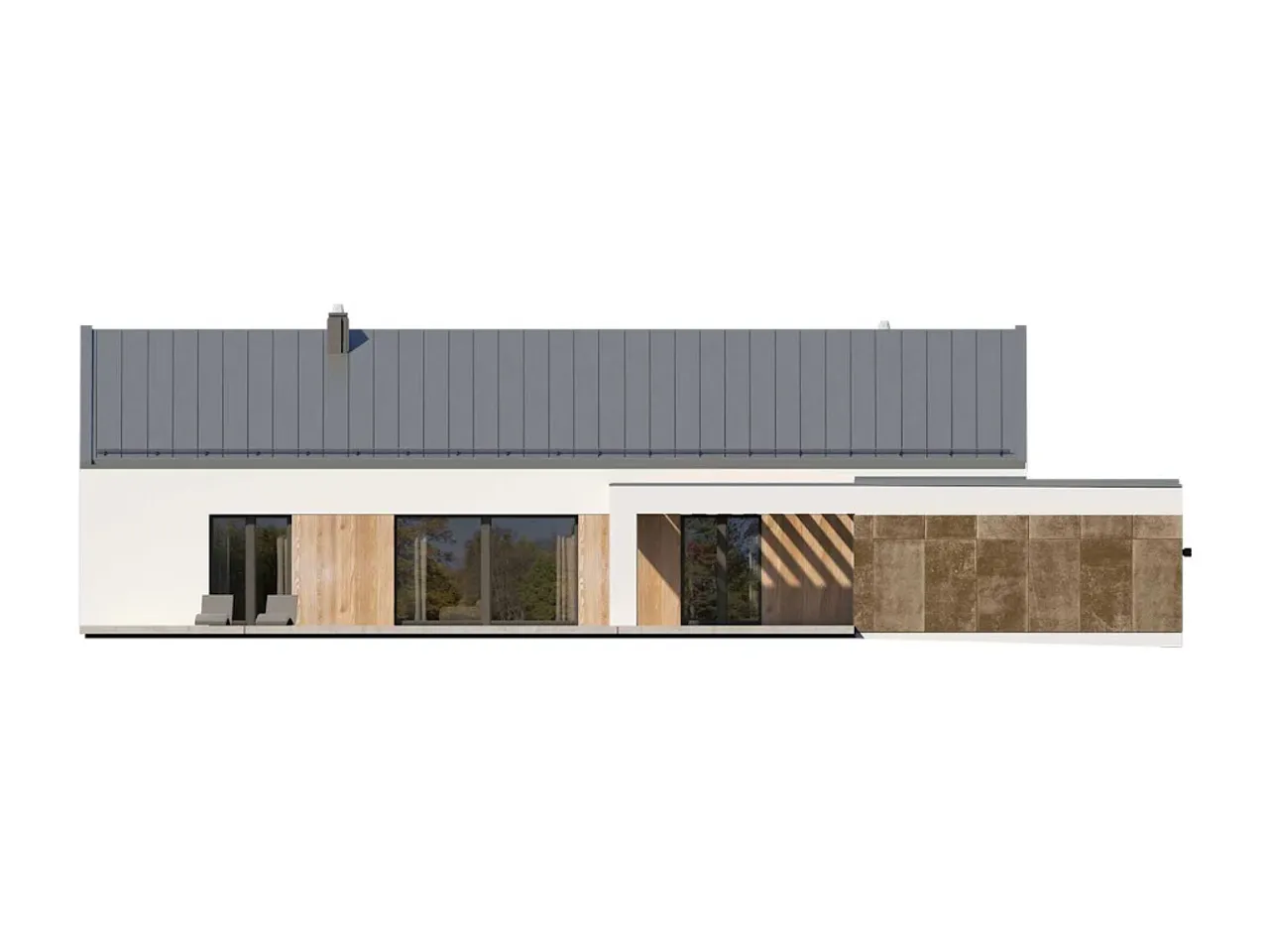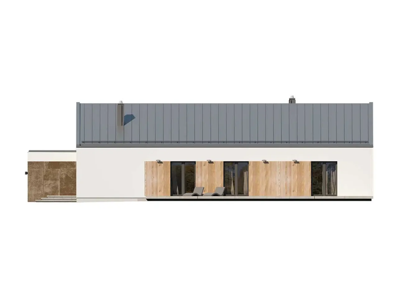 Projekt domu jednorodzinnego o prostej, ponadczasowej bryle powstał z myślą o rodzinach szukających efektywnego, funkcjonalnego rozwiązania na lata. Murowana technologia, strop żelbetowy oraz ściany nośne i działowe z wysokiej jakości materiałów pozwalają cieszyć się solidnością konstrukcji. Dach dwuspadowy o kącie nachylenia 30° pokryty dachówką lub blachodachówką doskonale współgra z nowoczesną elewacją z płyt elewacyjnych HPL i klinkieru, nadając budynkowi stylowy, wyrazisty charakter.