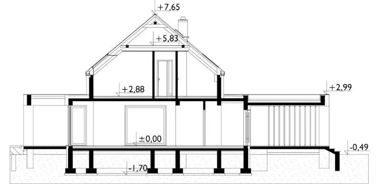 - przekroje - pokazują wszystkie elementy budynku po przecięciu go wzdłuż lub w poprzek od dachu do fundamentów tj. warstwy podłogi, stropów i dachu