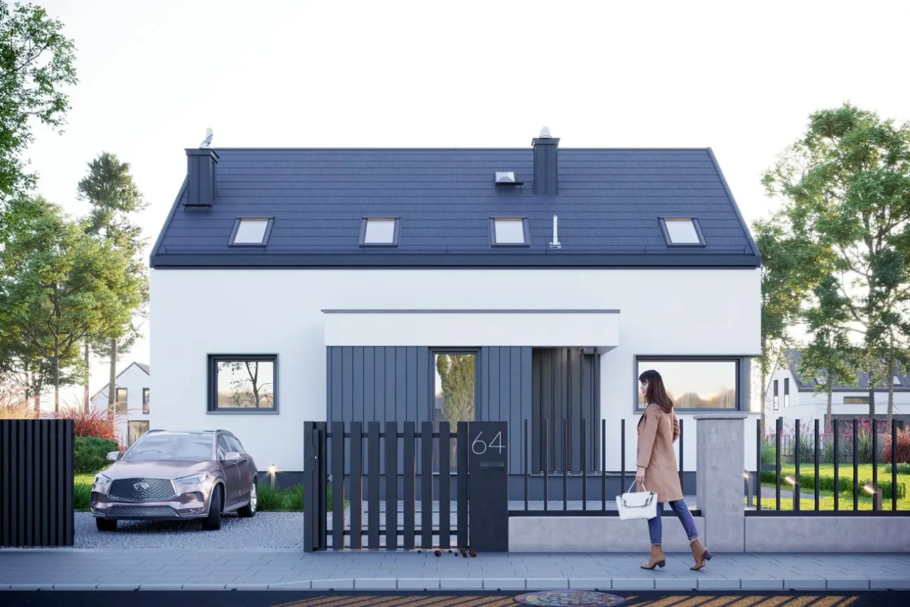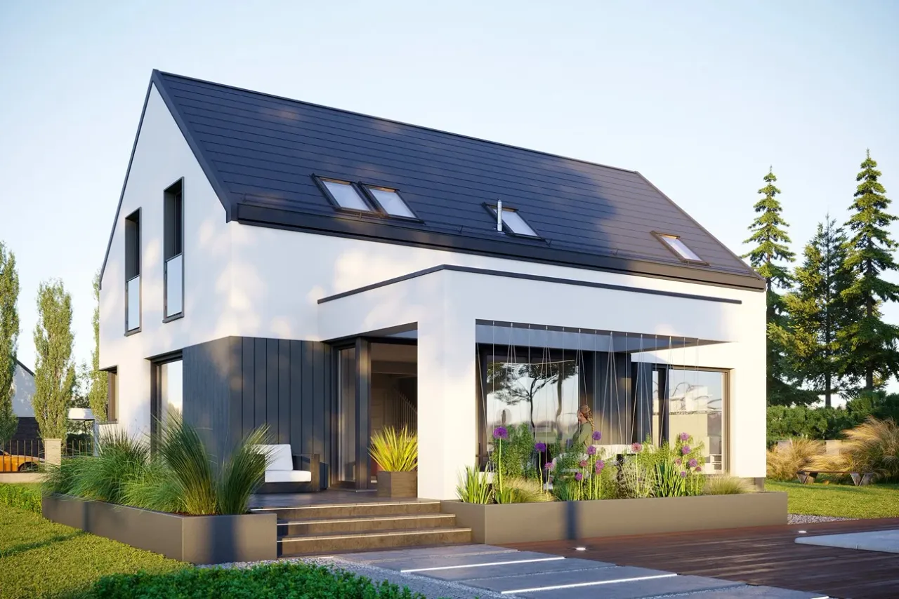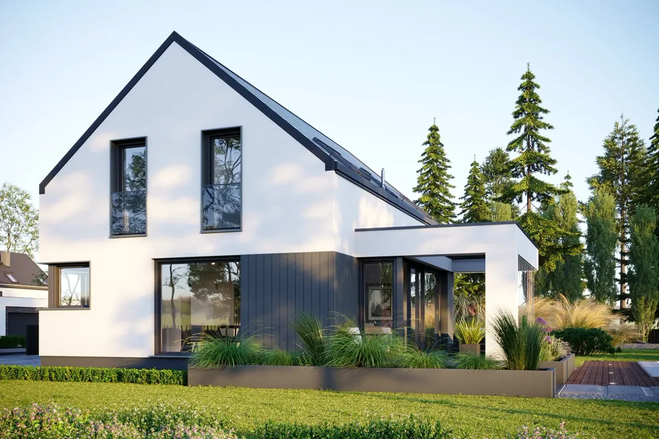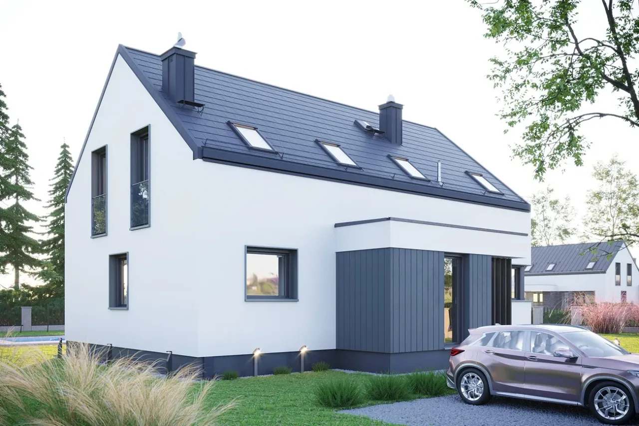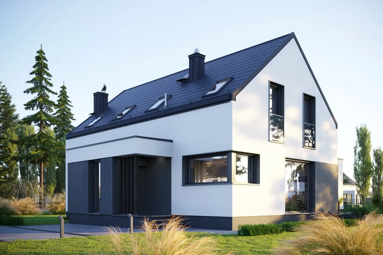 - elewacje - pokazują dokładny wygląd domu od frontu, z tyłu i z boków