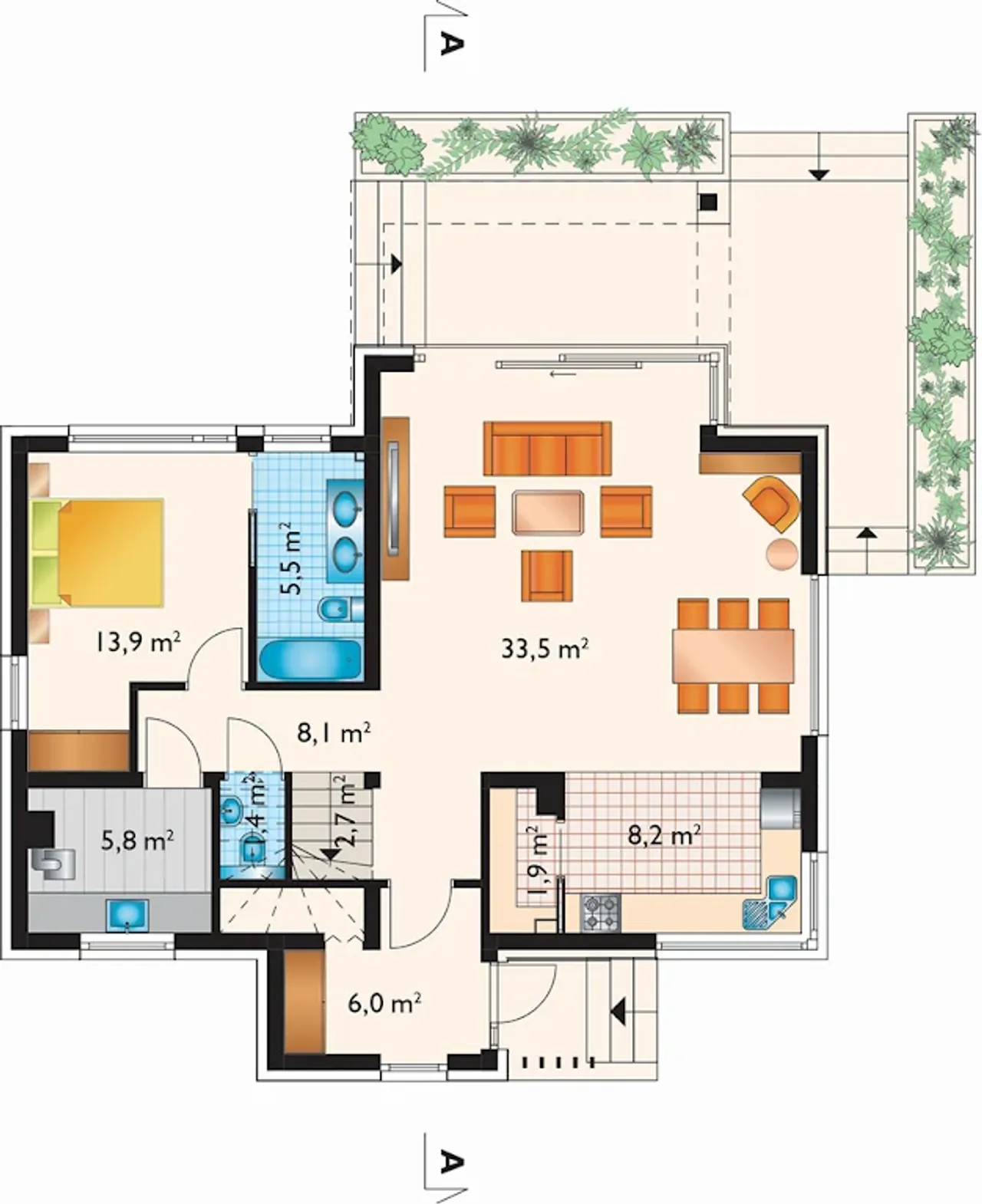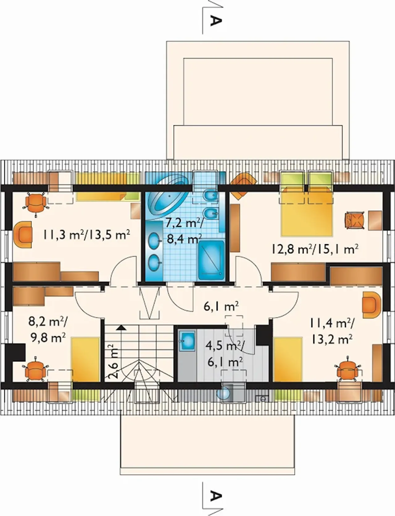 - przekroje - pokazują wszystkie elementy budynku po przecięciu go wzdłuż lub w poprzek od dachu do fundamentów tj. warstwy podłogi, stropów i dachu