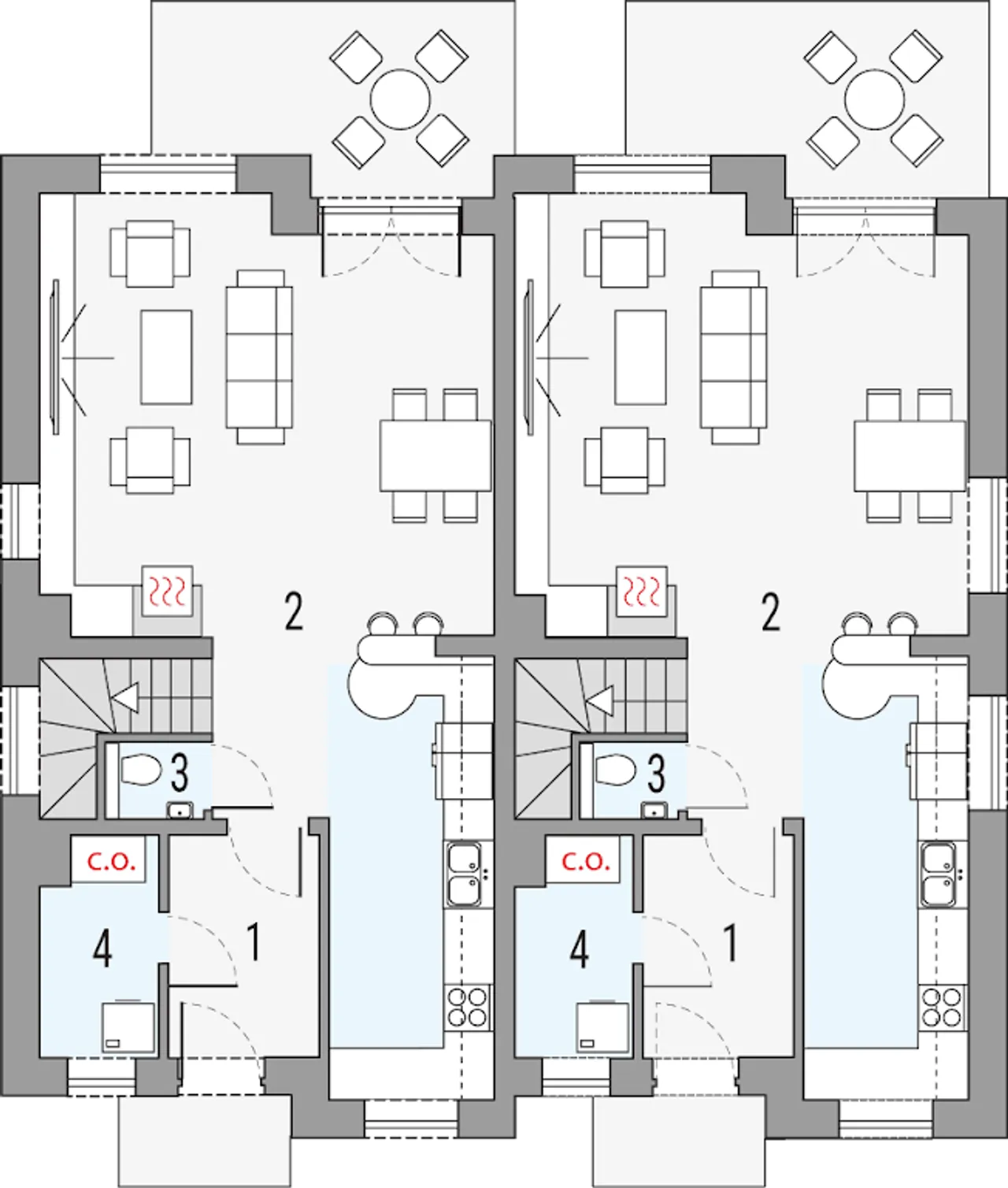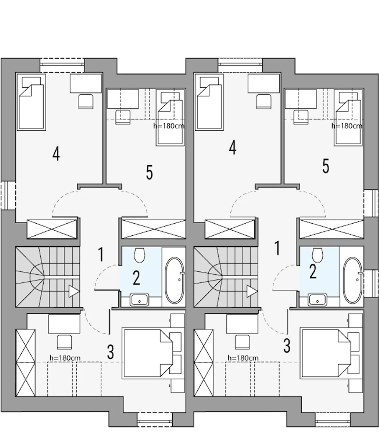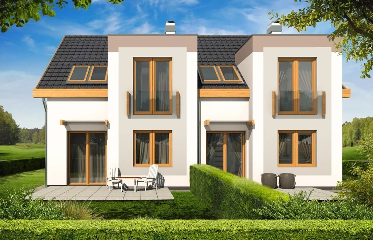 Wypełnij formularz i otrzymaj rysunki w pdf z dokładnymi wymiarami budynku i pomieszczeń (długość, szerokość, wysokość) dla projektu Emilia - dwulokalowy LP