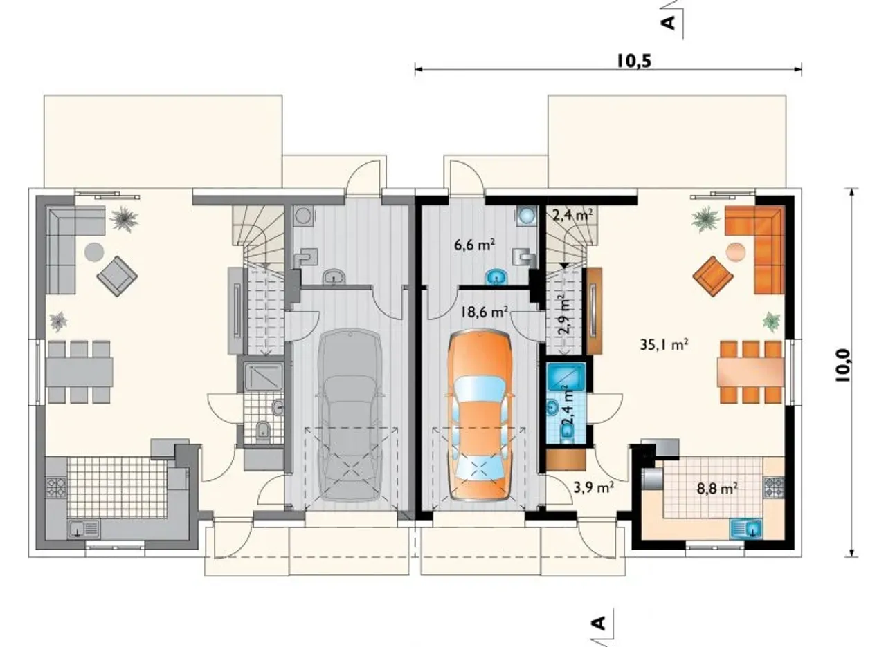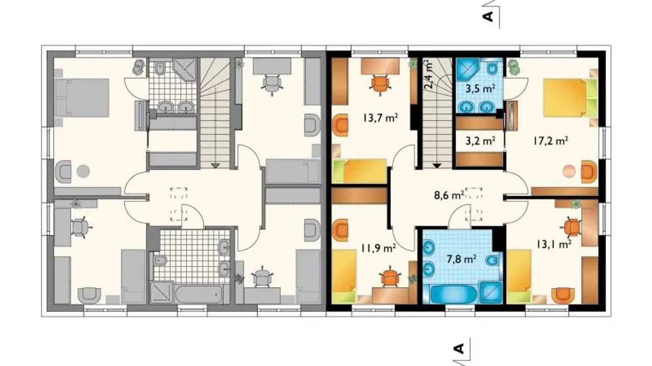- elewacje - pokazują dokładny wygląd domu od frontu, z tyłu i z boków