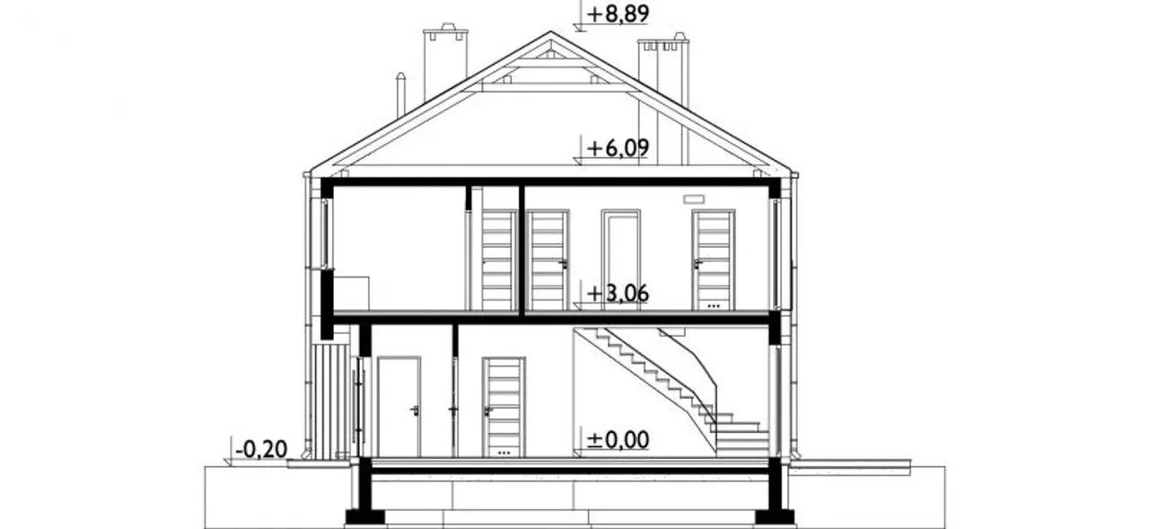 - przekroje - pokazują wszystkie elementy budynku po przecięciu go wzdłuż lub w poprzek od dachu do fundamentów tj. warstwy podłogi, stropów i dachu