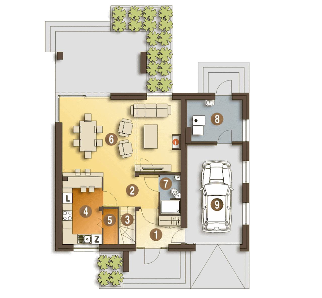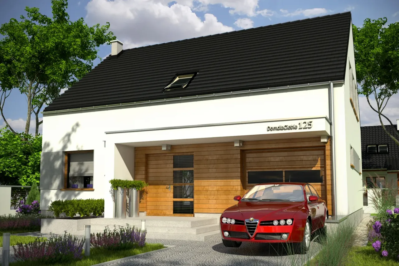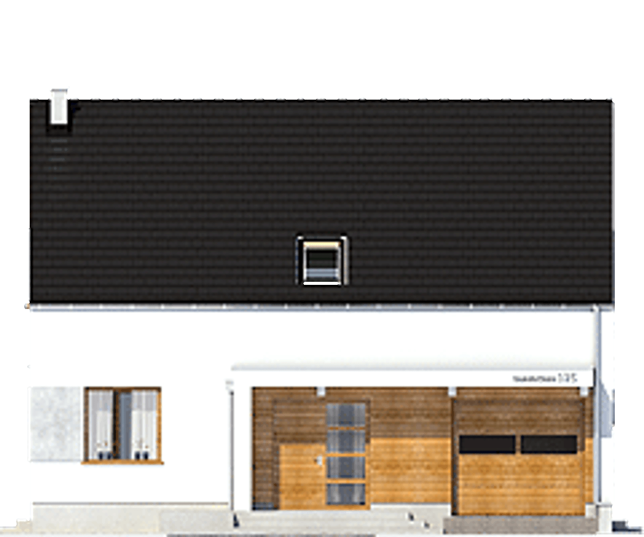 Wypełnij formularz i otrzymaj rysunki w pdf z dokładnymi wymiarami budynku i pomieszczeń (długość, szerokość, wysokość) dla projektu Emma trend z garażem 1-st. A na paliwo stałe
