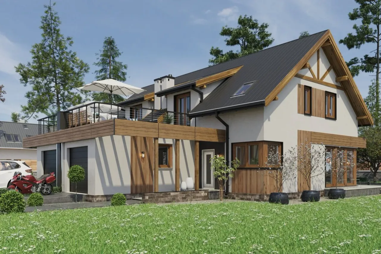 - Użycie innych materiałów na elementy konstrukcyjne budynku (ściany, stropy) przy zachowaniu wymagań konstrukcji, parametrów cieplnych budynku i elewacji.