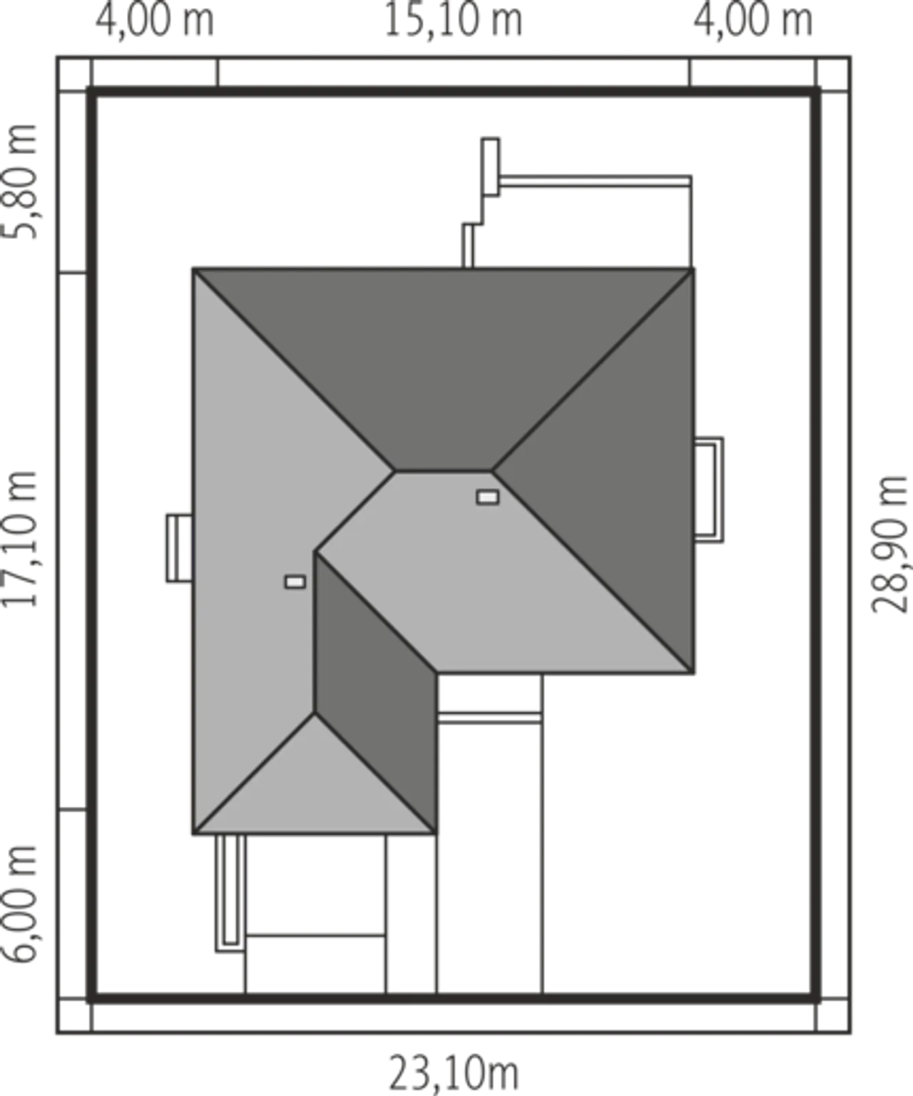 Wypełnij formularz i otrzymaj rysunki w pdf z dokładnymi wymiarami budynku i pomieszczeń (długość, szerokość, wysokość) dla projektu Eris G2 (wersja B)