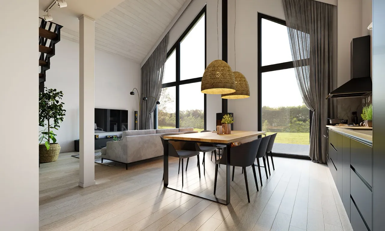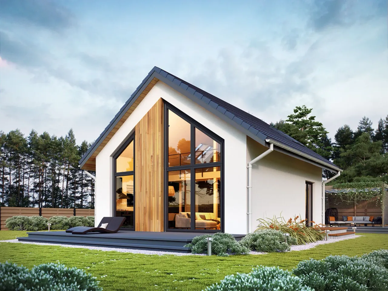 Erna 3 to projekt domu jednorodzinnego, który powstał z myślą o wygodzie i funkcjonalności dla całej rodziny. Przemyślana architektura, nowoczesny charakter i zastosowanie sprawdzonych technologii czynią ten dom świetnym wyborem dla osób ceniących energooszczędność oraz łatwość montażu. Dom bez garażu, z malowniczą kalenicą równoległą do drogi oraz dachem o kącie nachylenia 35° doskonale wpisze się zarówno w miejskie, jak i podmiejskie otoczenie.