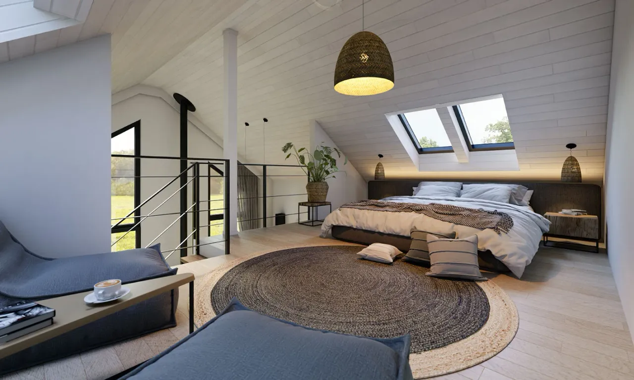Wnętrze projektu Erna 3 zachwyca prostotą oraz przemyślanym układem - trzy jasne pokoje, przestrzeń dzienna z kominkiem i nowoczesne rozwiązania grzewcze to przepis na dom przyjazny każdemu użytkownikowi. Ta murowana konstrukcja świetnie sprawdzi się jako energooszczędny, całoroczny dom jednorodzinny.