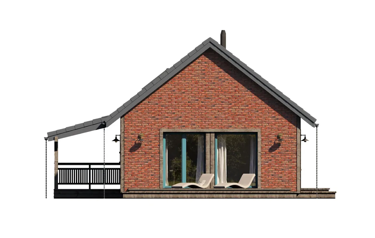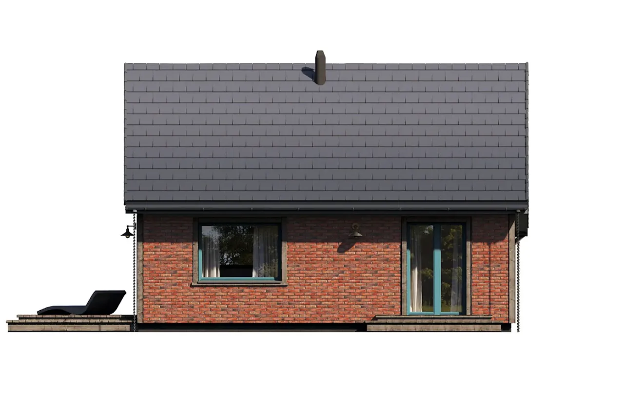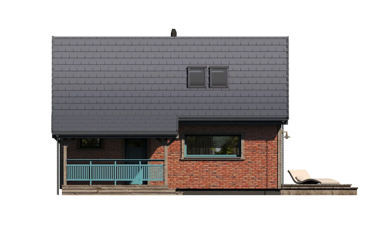 Nowoczesny dach dwuspadowy możesz wykończyć dachówką lub blachodachówką, dostosowując wygląd do otoczenia. Stylowa płytka elewacyjna zabezpiecza ściany i podkreśla minimalistyczną linię domu. Brak garażu otwiera możliwości dowolnej organizacji przestrzeni obok domu - możesz wykorzystać ten teren na ogród lub taras.