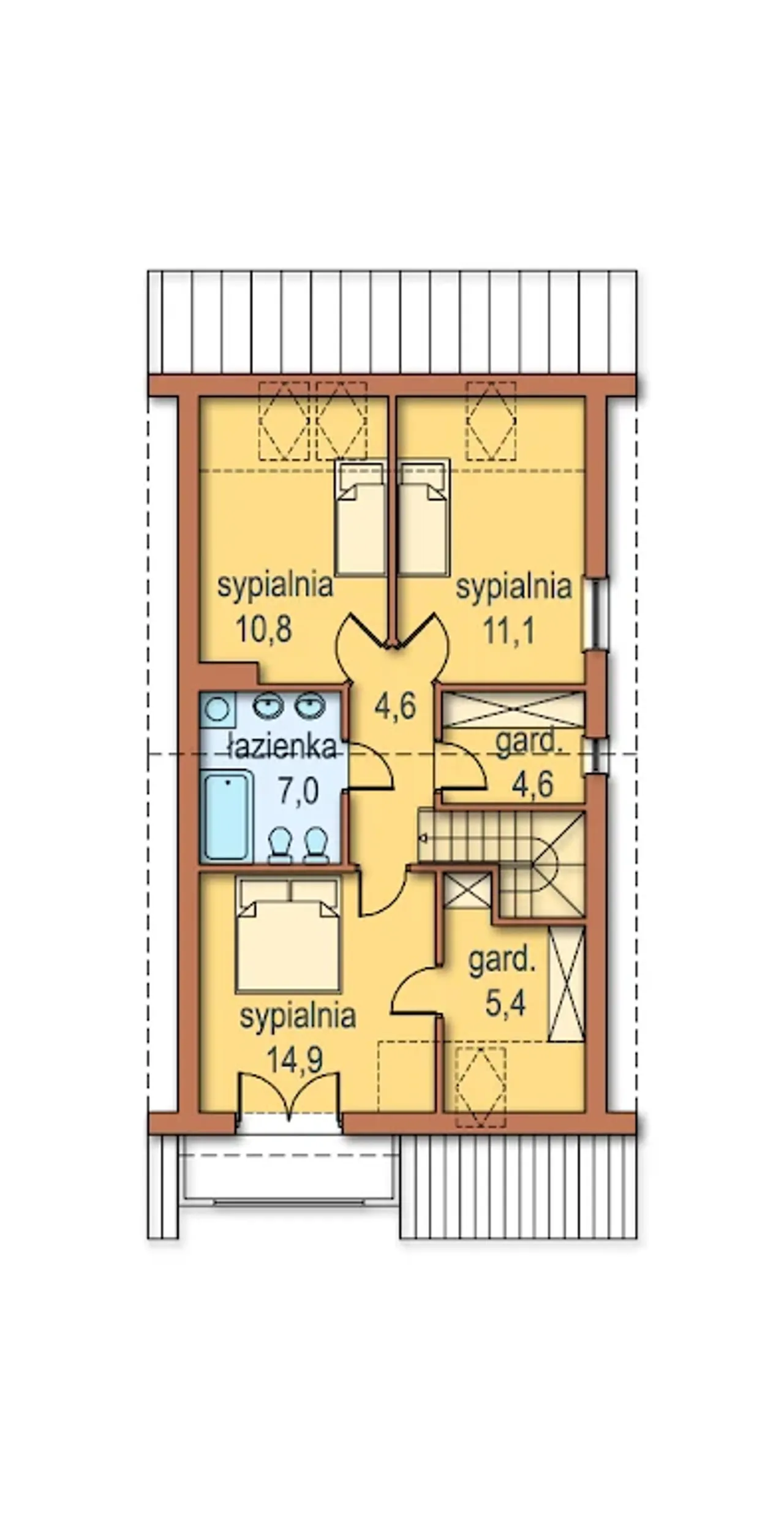 Kupując projekt w technologii murowanej powinieneś budować dom murowany. Zupełna zmiana technologii na szkieletową wymaga przeprojektowania całego budynku ( zmieniają się obciążenia, fundamenty, konstrukcja dachu). Wydamy zgodę na takie przeprojektowanie jednak wiążę się to z dużymi kosztami. Istnieją firmy wykonawcze, które podejmują się zmiany technologii budowy bezpłatnie przy skorzystaniu z ich usług wykonawczych. Zdarza się, że pracownia architektoniczna przygotowuje warianty konkretnego projektu przewidując także inne technologie. Prosimy o sprawdzenie czy istnieje poszukiwana wersja projektu, w zakładce - warianty projektu.