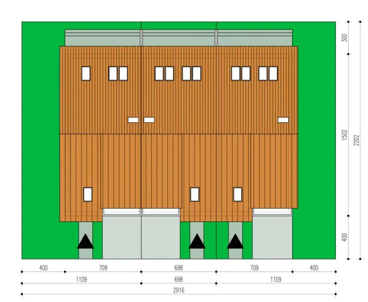 2. Elewacje – pokazujące dokładny wygląd budynku ze wszystkich czterech stron wraz z opisem proponowanych materiałów wykończeniowych.