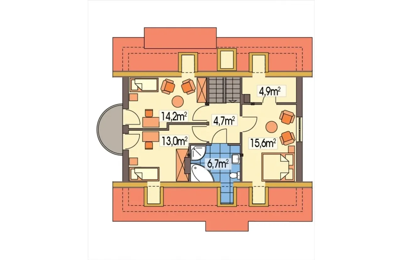 Wypełnij formularz i otrzymaj rysunki w pdf z dokładnymi wymiarami budynku i pomieszczeń (długość, szerokość, wysokość) dla projektu Ewa 2 wersja C zwężona bez garażu