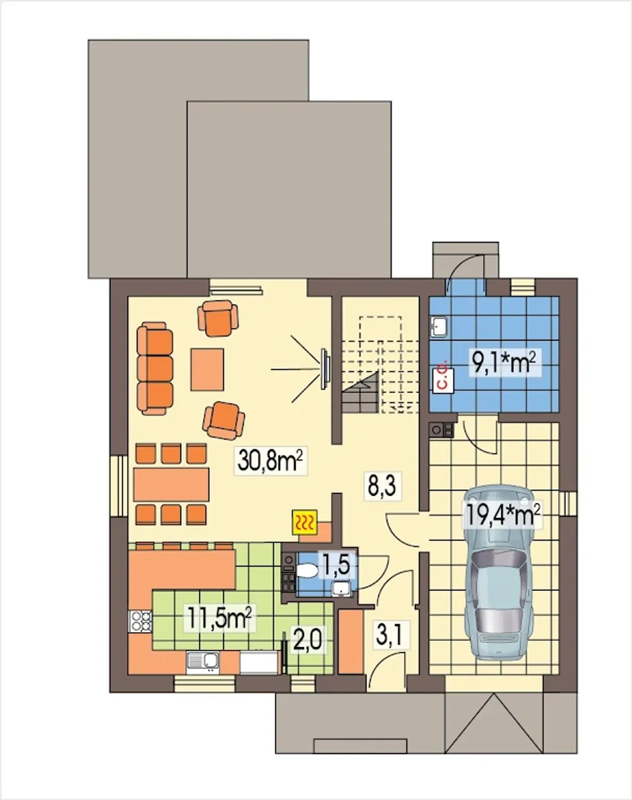 Wypełnij formularz i otrzymaj rysunki w pdf z dokładnymi wymiarami budynku i pomieszczeń (długość, szerokość, wysokość) dla projektu Ewa Gold 1 wersja A