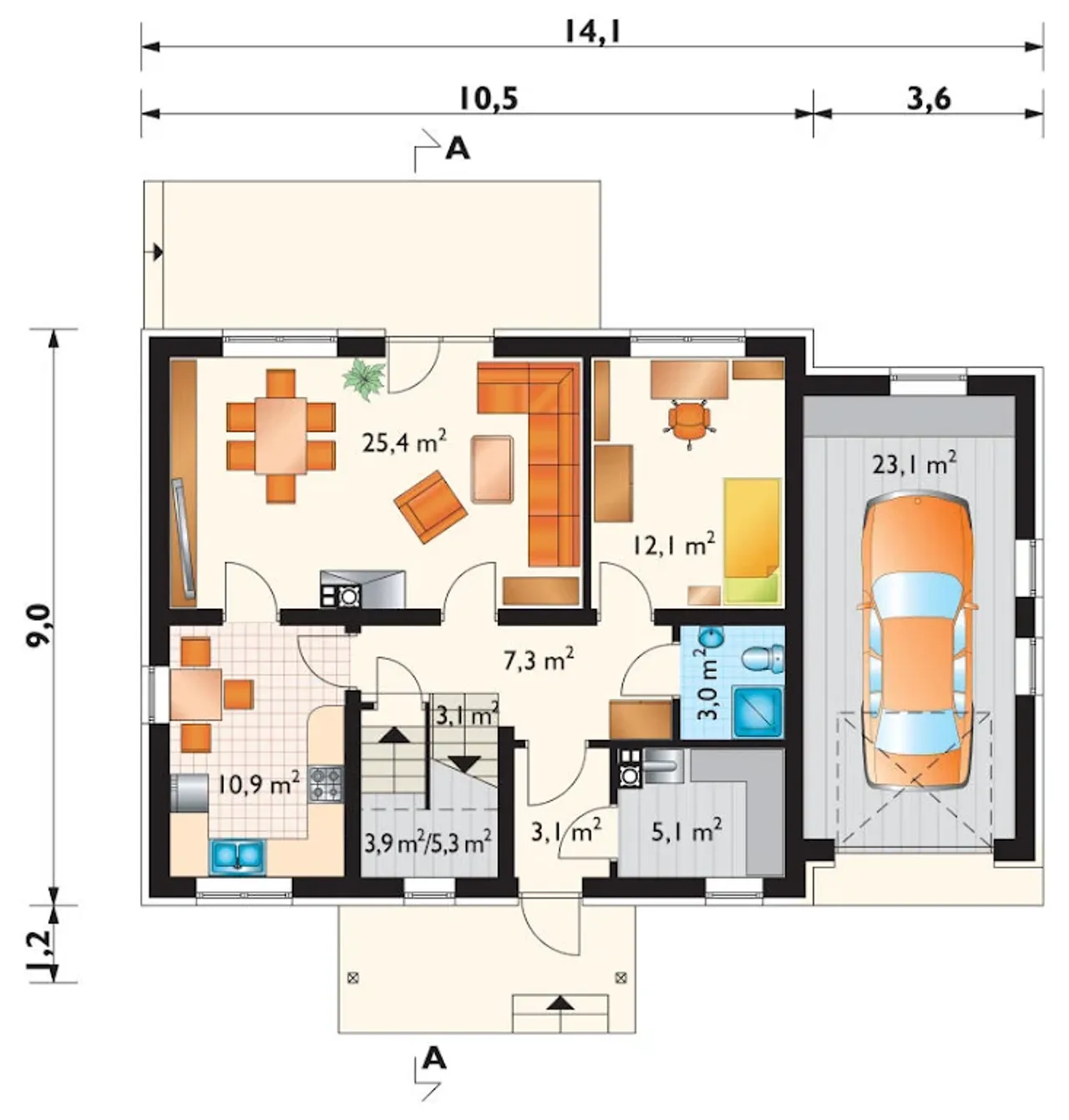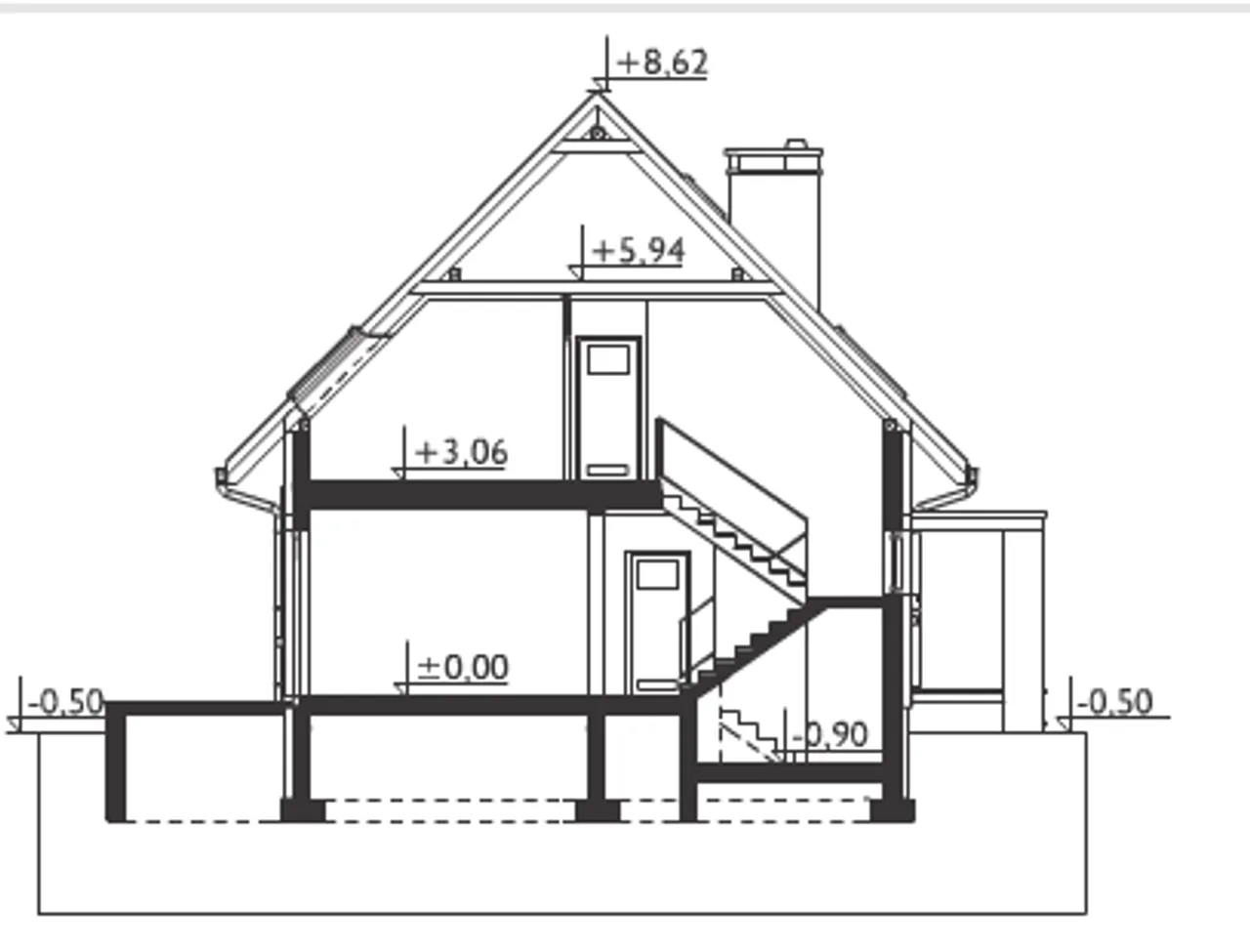 - elewacje - pokazują dokładny wygląd domu od frontu, z tyłu i z boków