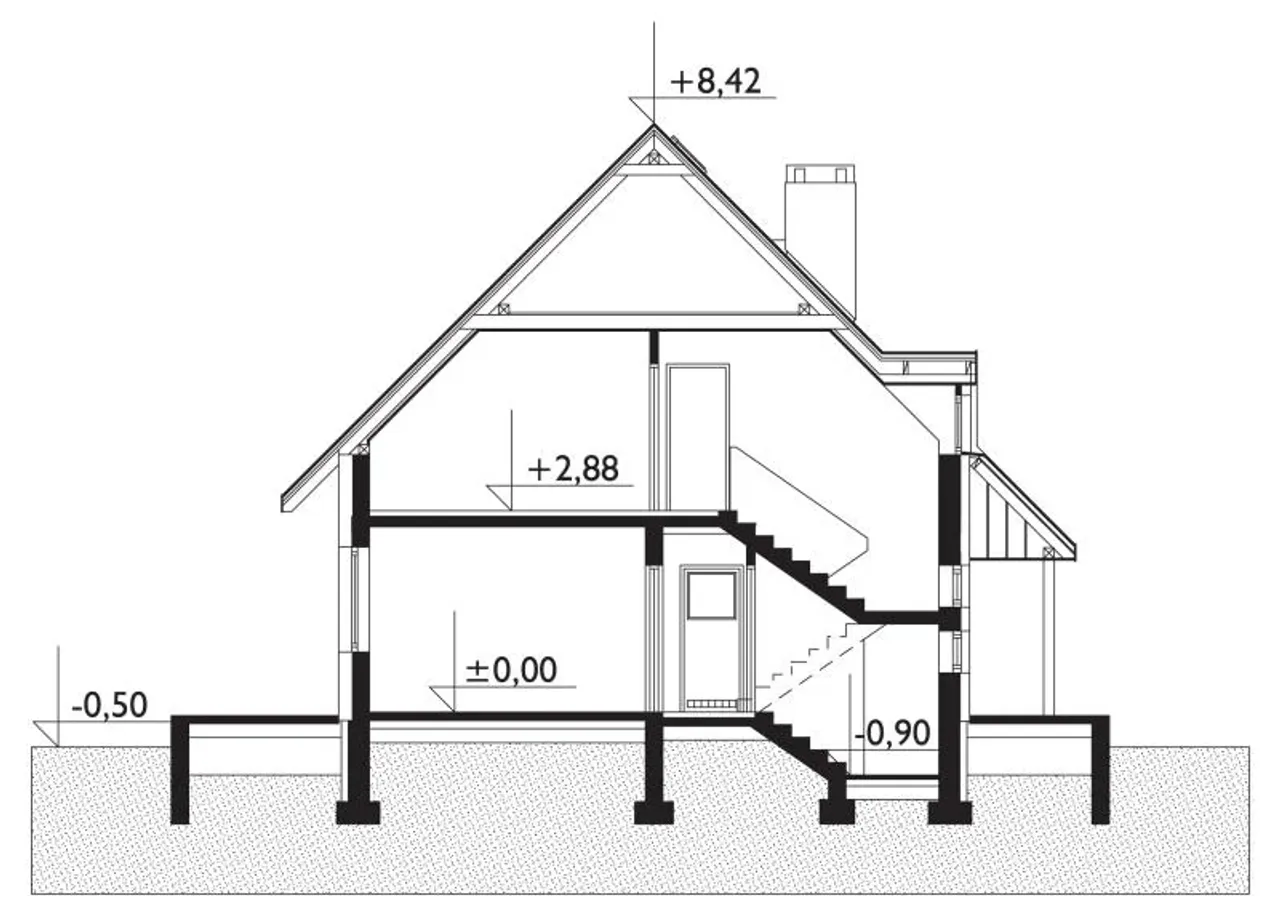 - przekroje - pokazują wszystkie elementy budynku po przecięciu go wzdłuż lub w poprzek od dachu do fundamentów tj. warstwy podłogi, stropów i dachu