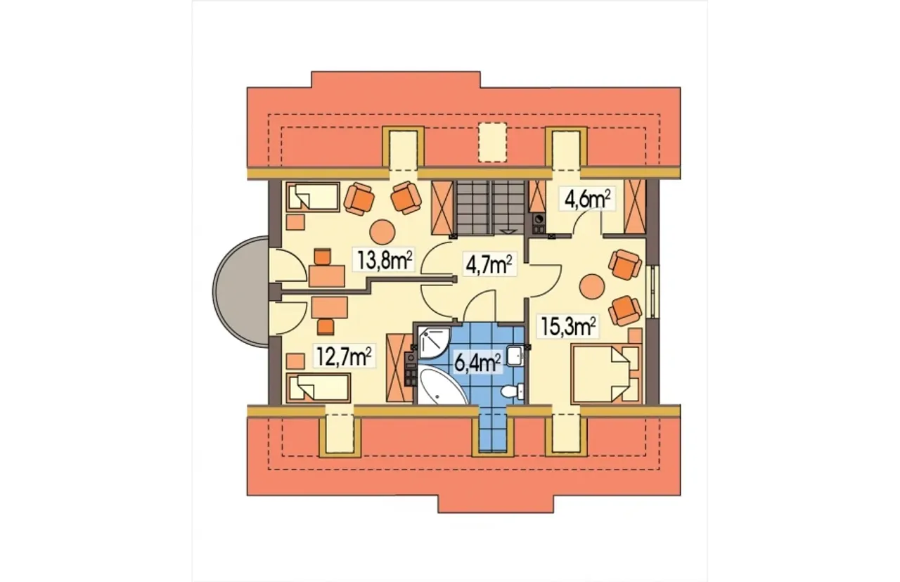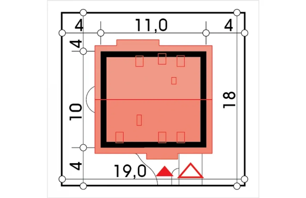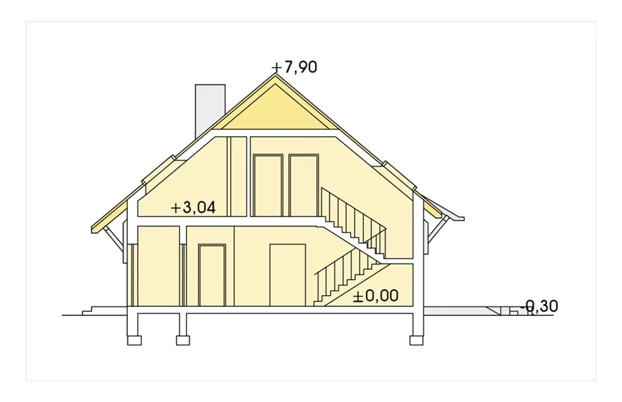 Wypełnij formularz i otrzymaj rysunki w pdf z dokładnymi wymiarami budynku i pomieszczeń (długość, szerokość, wysokość) dla projektu Ewa wersja B zwężona