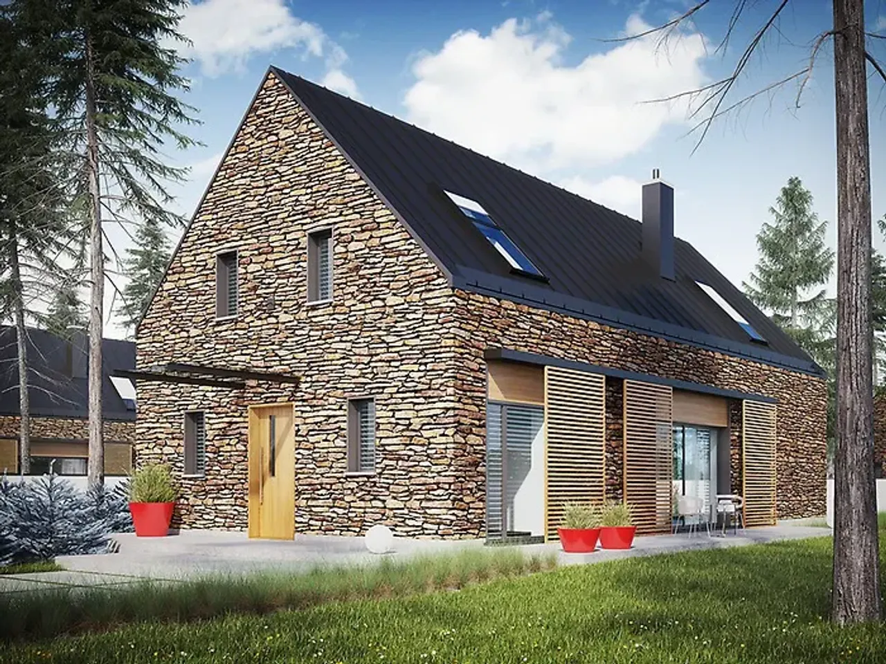 Gotowy projekt domu EX 15 II soft to murowany dom bez garażu. Decydując się na projekt EX 15 II soft, przyszli inwestorzy zamieszkają w budynku parterowym z poddaszem użytkowym. Konstrukcję dachu wieńczy dach dwuspadowy, a całość utrzymana jest w nowoczesnej stylistyce. Gotowy projekt domu EX 15 II soft będzie domem w zabudowie całorocznej, bez podpiwniczenia, w którym przewidziano instalację kominkową. Praktyczny rozkład pomieszczeń oraz ich intuicyjna integracja, sprawiają, że wnętrza są przytulne przy zachowaniu dużej dozy przestronności. W projekcie zadbano o otwartość, która powoduje, że budynek wydaje się dużo bardziej przestronny, atrakcyjny i funkcjonalny. Projekt charakteryzuje elegancka forma i współczesna estetyka.