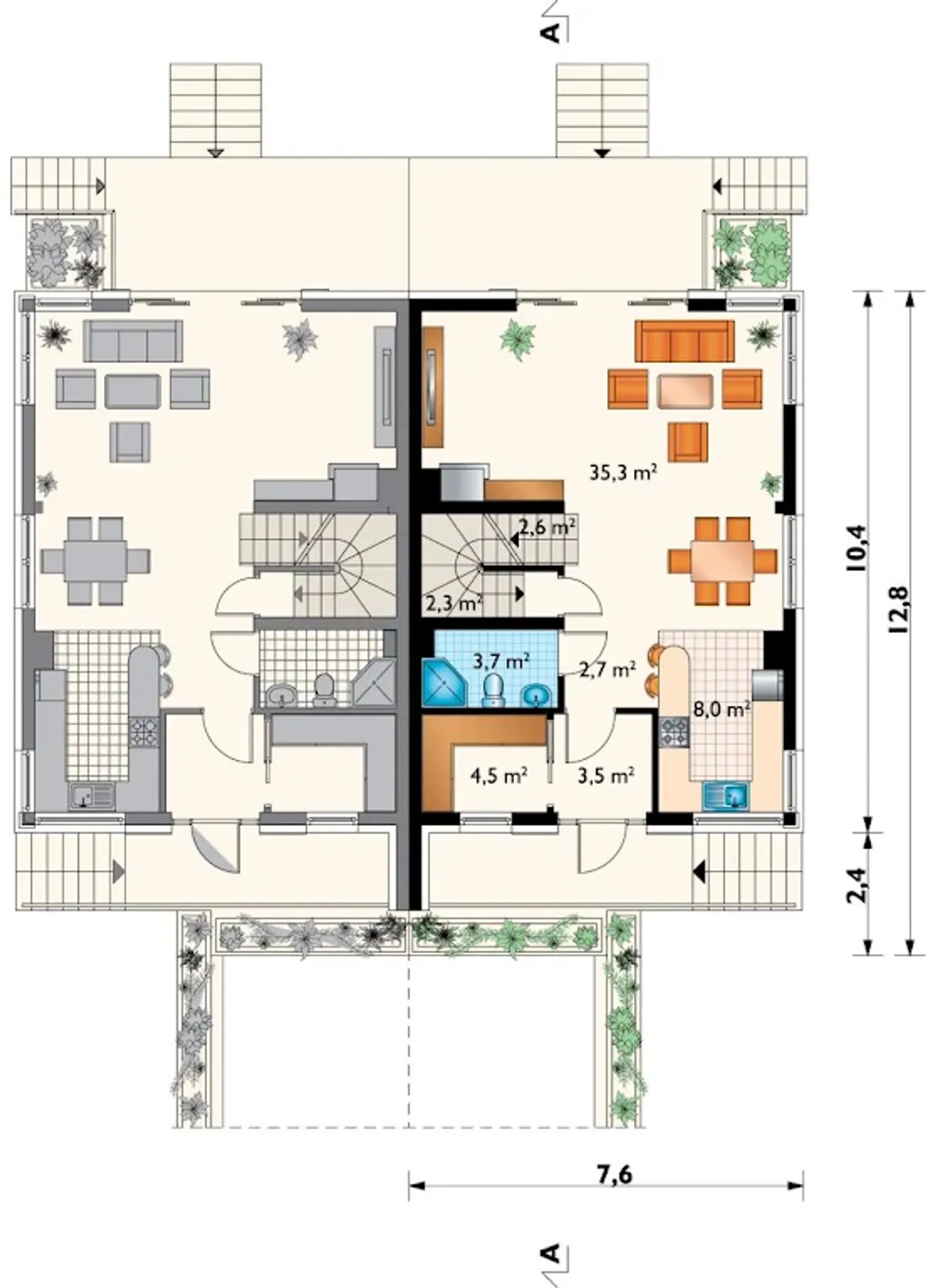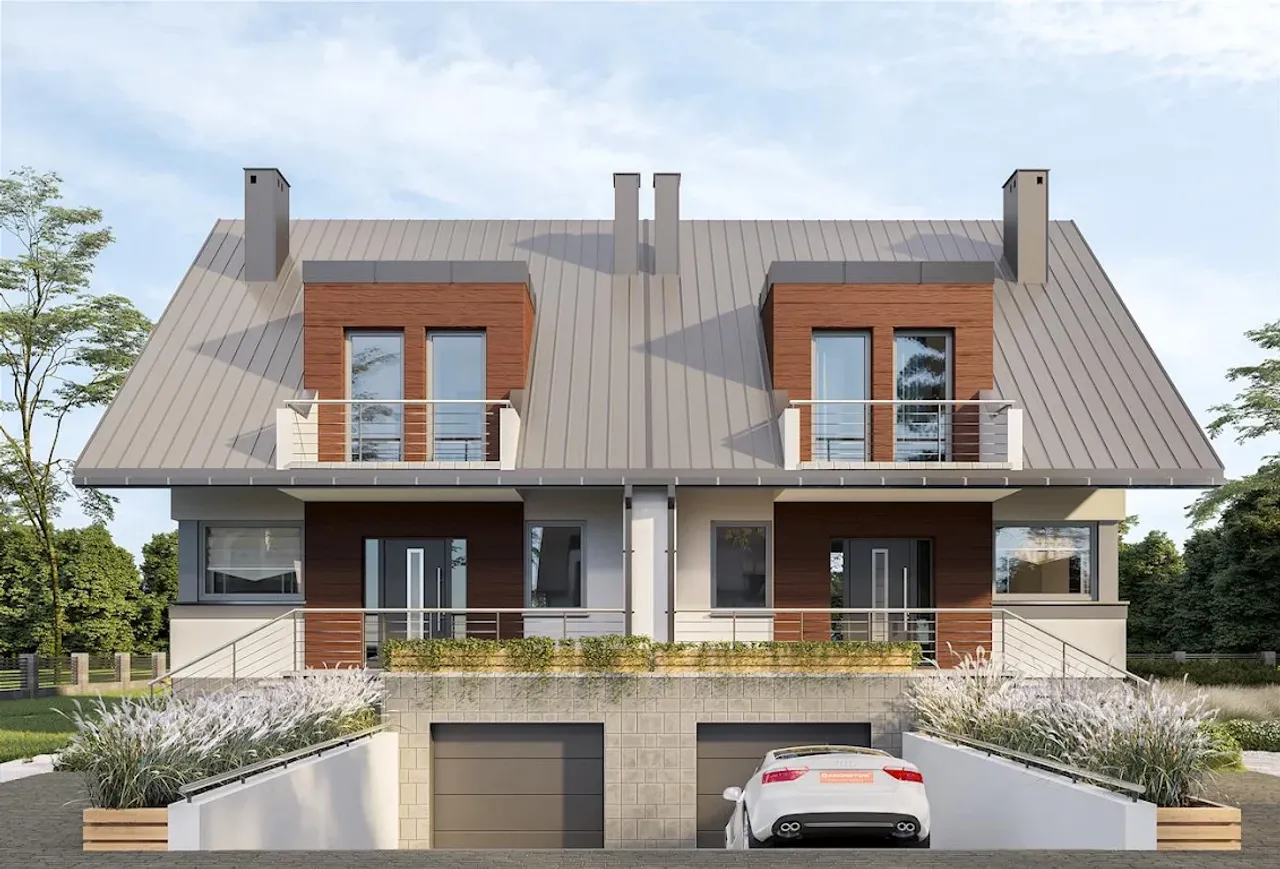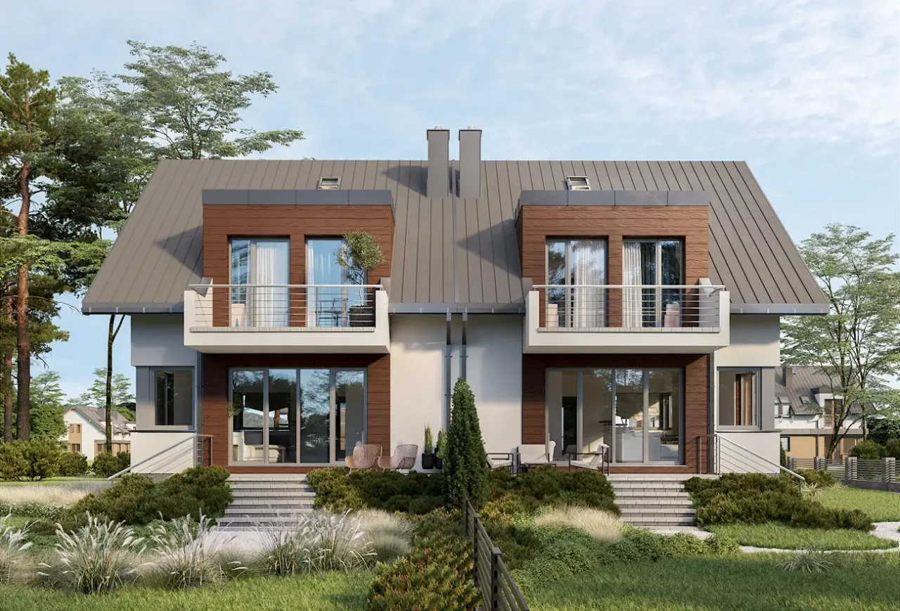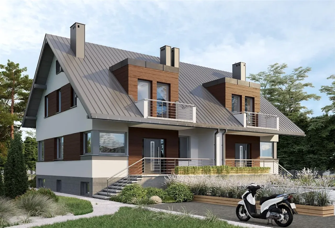 - elewacje - pokazują dokładny wygląd domu od frontu, z tyłu i z boków