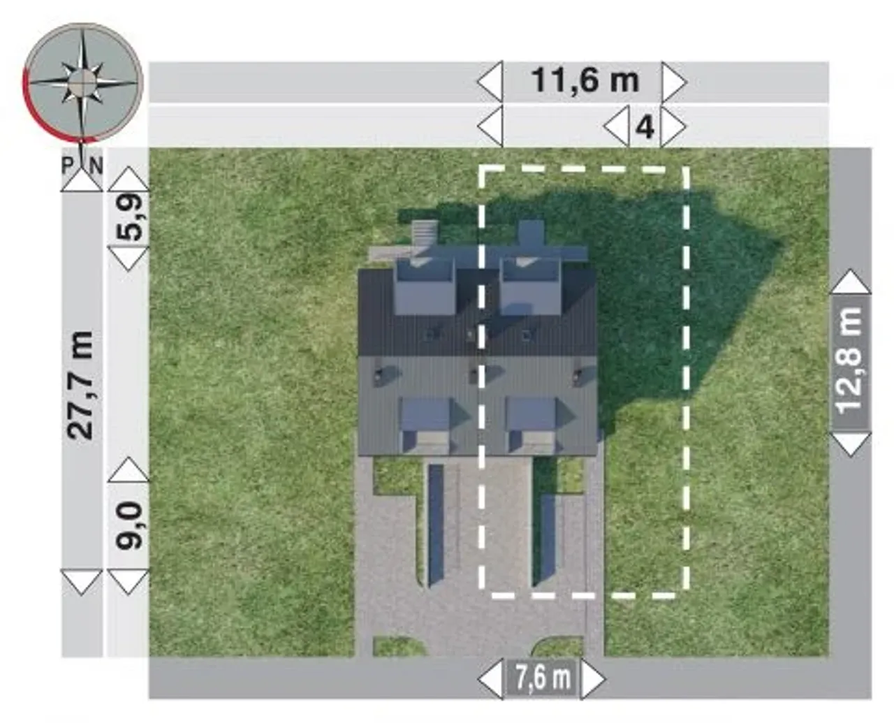 Wypełnij formularz i otrzymaj rysunki w pdf z dokładnymi wymiarami budynku i pomieszczeń (długość, szerokość, wysokość) dla projektu Felicja Duo