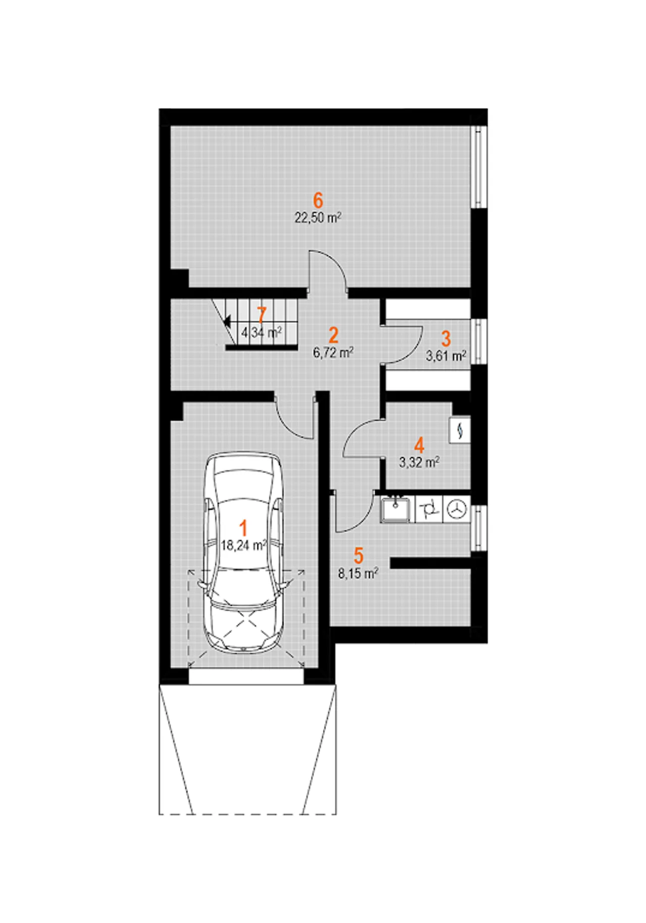- rzuty wszystkich kondygnacji- pokazuje rozmieszczenie poszczególnych pomieszczeń i ich wymiary, powierzchnie, rozmieszczenie ścian, rozmieszczenie otworów drzwiowych, okiennych, urządzeń kuchennych i sanitarnych