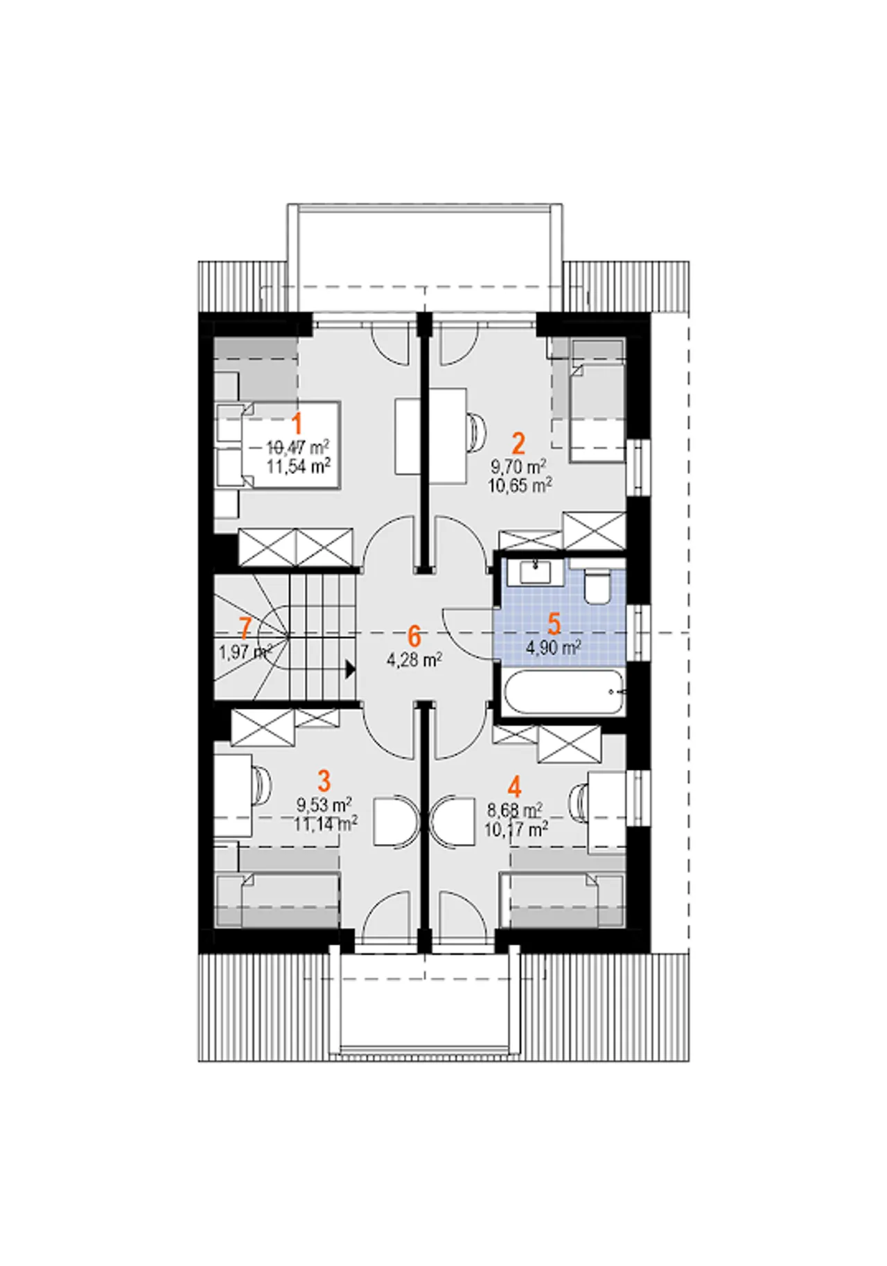 - rzut więźby dachowej - pokazuje układ elementów konstrukcyjnych dachu i ich przekroje, zestawienie elementów więźby dachowej