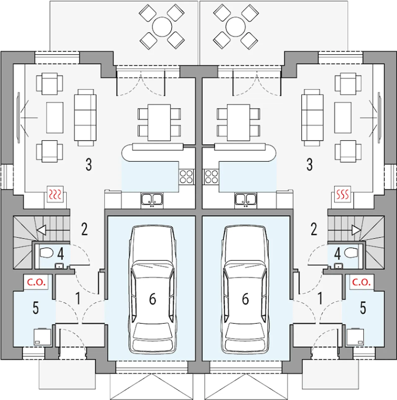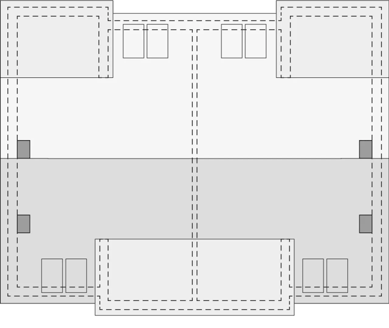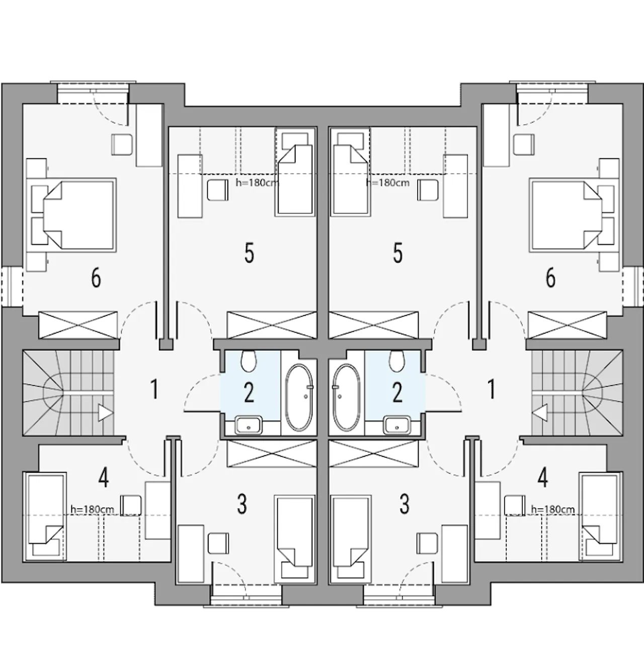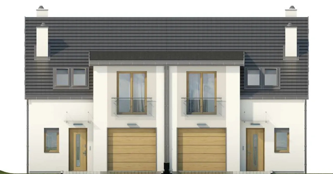 Wypełnij formularz i otrzymaj rysunki w pdf z dokładnymi wymiarami budynku i pomieszczeń (długość, szerokość, wysokość) dla projektu Feliks - dwulokalowy LLL
